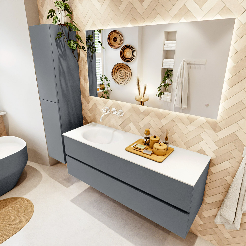 En español: Ya sea que elija un color o un acabado de madera, un mueble de baño a medida, con o sin agujeros para grifos, el conjunto de muebles de baño Vica lo tiene todo. Con la serie Vica, puede elegir entre 3 modelos de lavabos: CLOUD y MOON en Solid Surface, con opciones de lavabo a la derecha, izquierda, en el medio o doble, y con o sin agujeros para grifos. También está el lavabo de cerámica DENIA con opciones en el medio y doble. El conjunto de muebles de baño Vica está disponible en una amplia gama de tamaños estándar, desde 60 cm hasta 200 cm, que aumentan en incrementos de 10 cm. El mueble de baño Vica está disponible en hasta 25 colores, incluyendo nuestros colores especiales Oro y Plata. Si no encuentra el tamaño o color ideal, siempre es posible hacer un pedido a medida. También puede coordinar su baño completo con columnas, bañeras, nichos y accesorios, todos en el mismo color. Con el conjunto de muebles de baño Vica, tendrá un mueble fantástico que completa su baño.