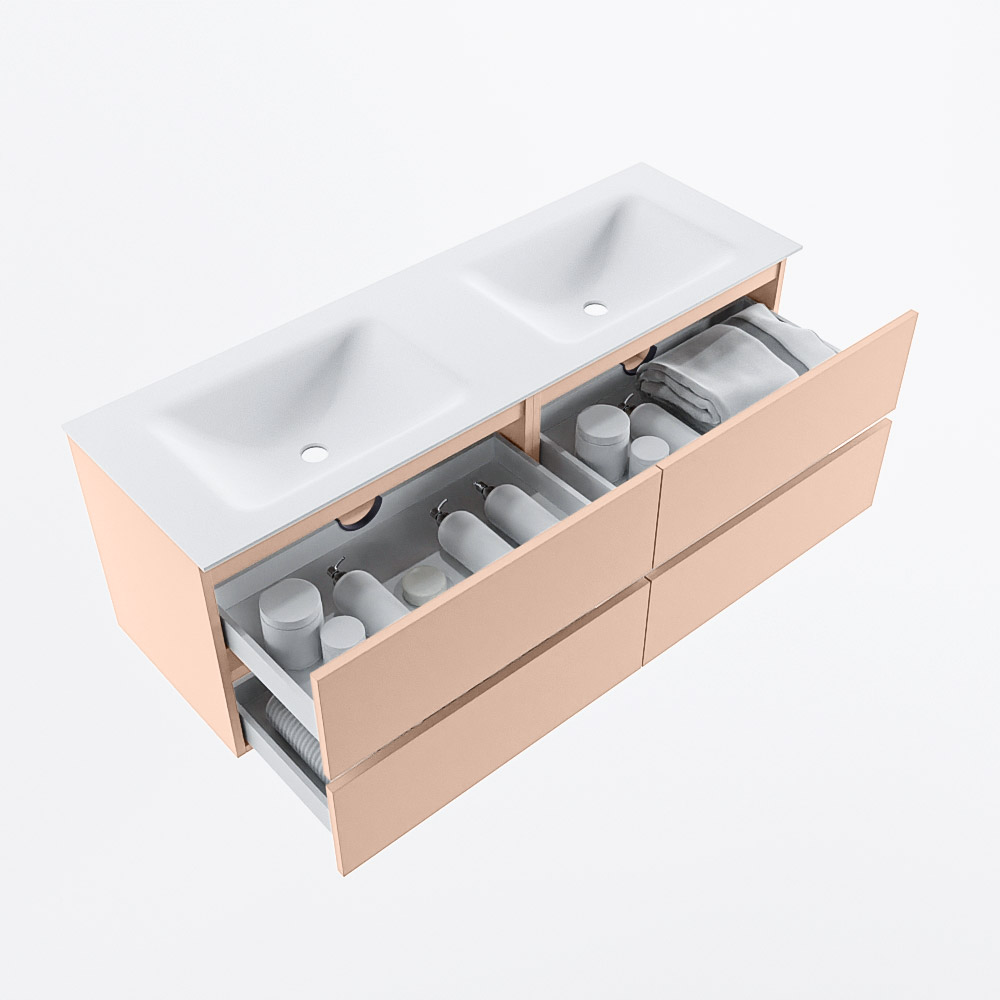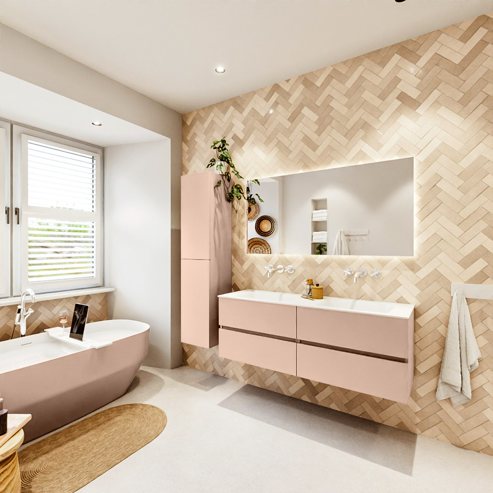 Ya sea que elija un color o un acabado de madera, un mueble de baño a medida, con o sin agujeros para grifos, el conjunto de muebles de baño Vica lo tiene todo. Con la serie Vica, puede elegir entre 3 modelos de lavabos: CLOUD y MOON en Solid Surface, con opciones de lavabo a la derecha, izquierda, en el medio o doble, y con o sin agujeros para grifos. También está el lavabo de cerámica DENIA con opciones en el medio y doble. El conjunto de muebles de baño Vica está disponible en una amplia gama de tamaños estándar, desde 60 cm hasta 200 cm, que aumentan en incrementos de 10 cm. El mueble de baño Vica está disponible en hasta 25 colores, incluyendo nuestros colores especiales Oro y Plata. Si no encuentra el tamaño o color ideal, siempre es posible hacer un pedido a medida. También puede coordinar su baño completo con columnas, bañeras, nichos y accesorios, todos en el mismo color. Con el conjunto de muebles de baño Vica, tendrá un mueble fantástico que completa su baño.