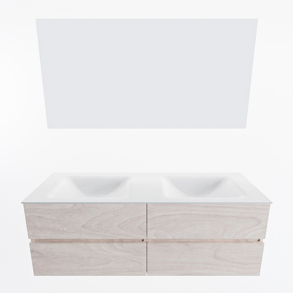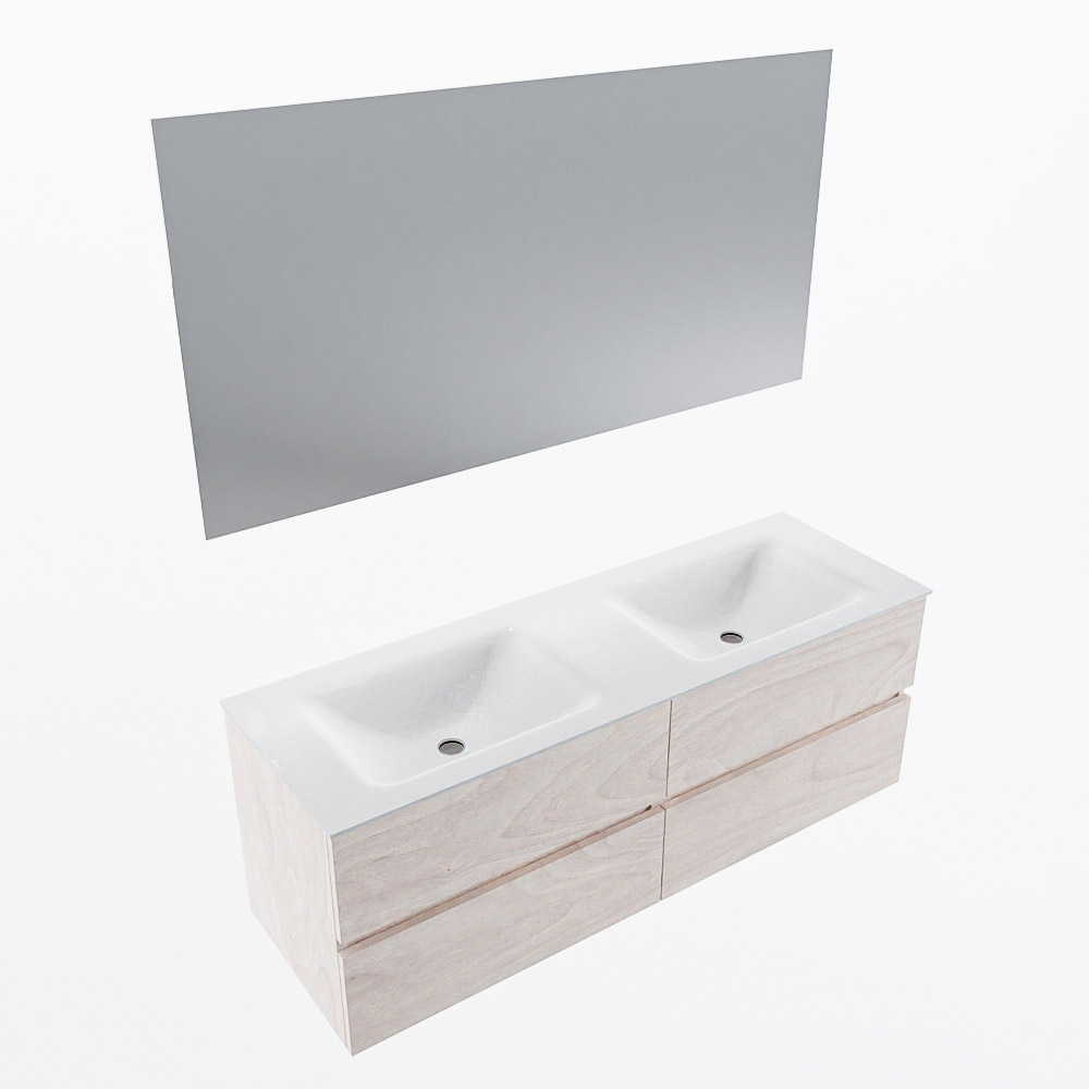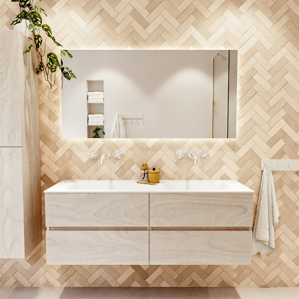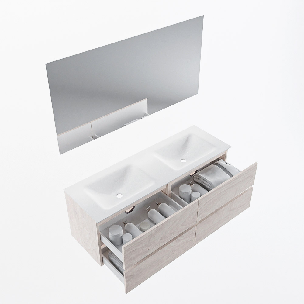 MONDIAZ VICA 140cm mueble de baño Underlayment 4 cajones. Lavabo CLOUD Doble sin orificio color Talc con espejo LED.