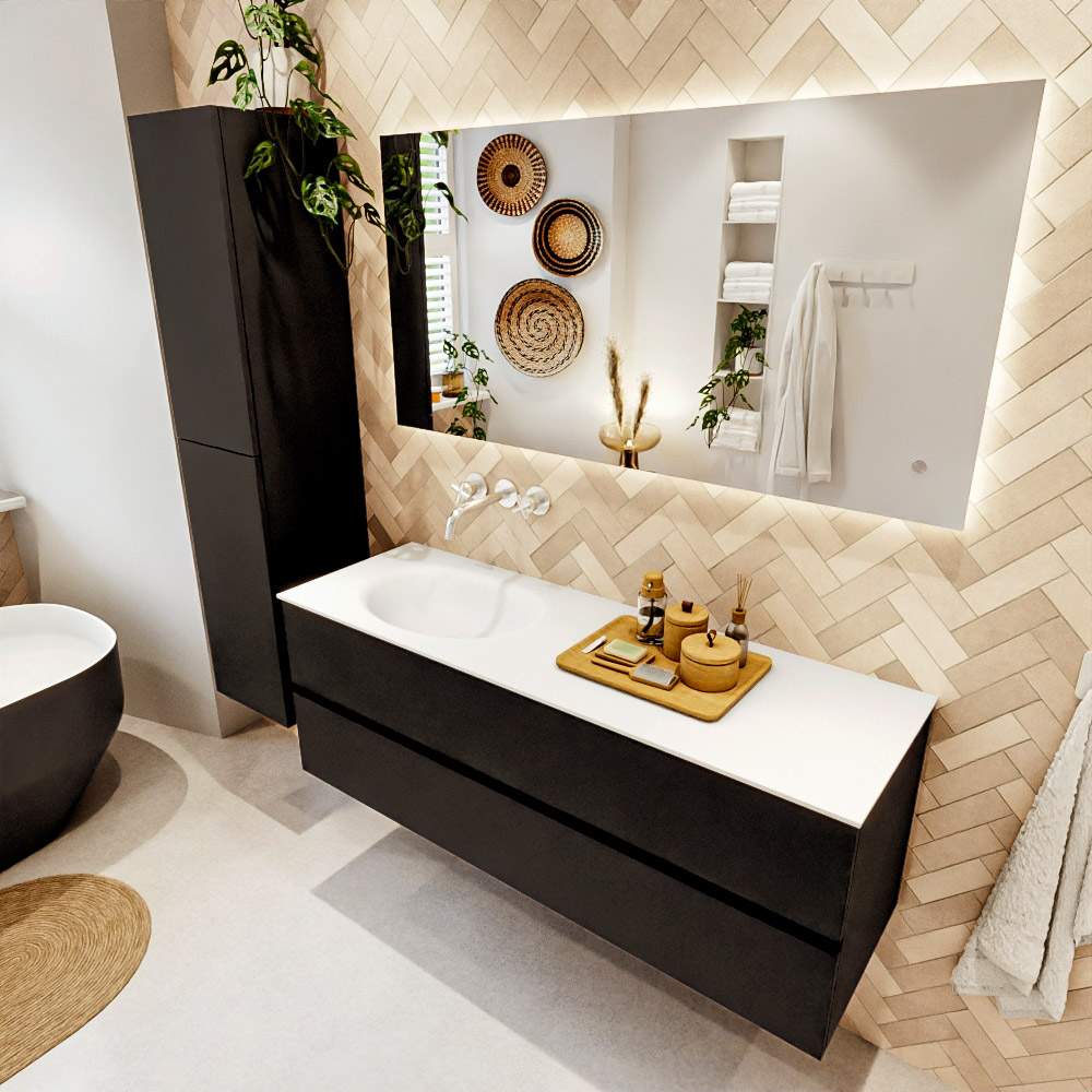 Ya sea que elija un color o un acabado de madera, un mueble de baño a medida, con o sin agujeros para grifos, el conjunto de muebles de baño Vica lo tiene todo. Con la serie Vica, puede elegir entre 3 modelos de lavabos: CLOUD y MOON en Solid Surface, con opciones de lavabo a la derecha, izquierda, en el medio o doble, y con o sin agujeros para grifos. También está el lavabo de cerámica DENIA con opciones en el medio y doble. El conjunto de muebles de baño Vica está disponible en una amplia gama de tamaños estándar, desde 60 cm hasta 200 cm, que aumentan en incrementos de 10 cm. El mueble de baño Vica está disponible en hasta 25 colores, incluyendo nuestros colores especiales Oro y Plata. Si no encuentra el tamaño o color ideal, siempre es posible hacer un pedido a medida. También puede coordinar su baño completo con columnas, bañeras, nichos y accesorios, todos en el mismo color. Con el conjunto de muebles de baño Vica, tendrá un mueble fantástico que completa su baño.