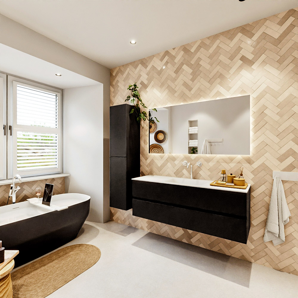 Ya sea que elija un color o un acabado de madera, un mueble de baño a medida, con o sin agujeros para grifos, el conjunto de muebles de baño Vica lo tiene todo. Con la serie Vica, puede elegir entre 3 modelos de lavabos: CLOUD y MOON en Solid Surface, con opciones de lavabo a la derecha, izquierda, en el medio o doble, y con o sin agujeros para grifos. También está el lavabo de cerámica DENIA con opciones en el medio y doble. El conjunto de muebles de baño Vica está disponible en una amplia gama de tamaños estándar, desde 60 cm hasta 200 cm, que aumentan en incrementos de 10 cm. El mueble de baño Vica está disponible en hasta 25 colores, incluyendo nuestros colores especiales Oro y Plata. Si no encuentra el tamaño o color ideal, siempre es posible hacer un pedido a medida. También puede coordinar su baño completo con columnas, bañeras, nichos y accesorios, todos en el mismo color. Con el conjunto de muebles de baño Vica, tendrá un mueble fantástico que completa su baño.