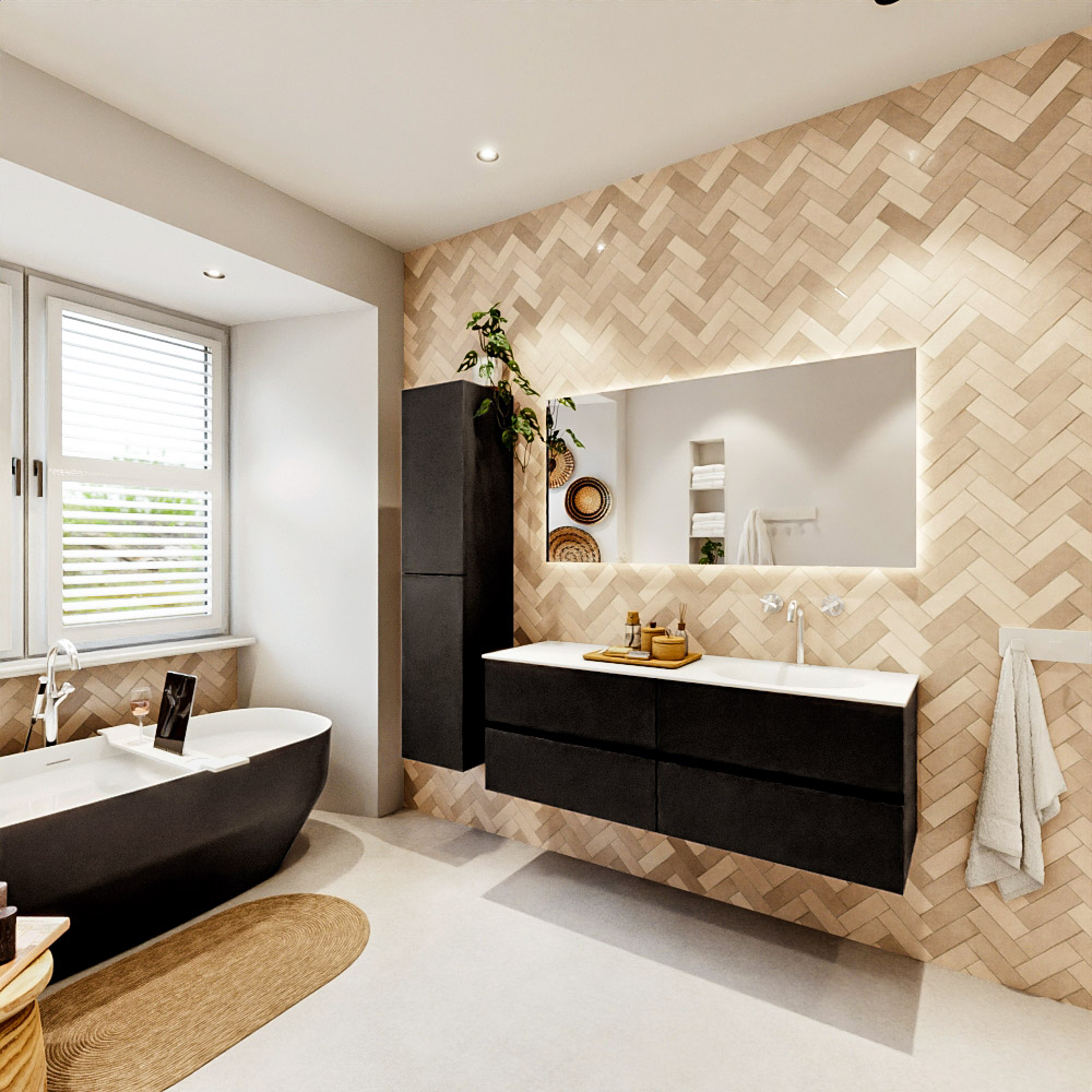 Ya sea que elija un color o un acabado de madera, un mueble de baño a medida, con o sin agujeros para grifos, el conjunto de muebles de baño Vica lo tiene todo. Con la serie Vica, puede elegir entre 3 modelos de lavabos: CLOUD y MOON en Solid Surface, con opciones de lavabo a la derecha, izquierda, en el medio o doble, y con o sin agujeros para grifos. También está el lavabo de cerámica DENIA con opciones en el medio y doble. El conjunto de muebles de baño Vica está disponible en una amplia gama de tamaños estándar, desde 60 cm hasta 200 cm, que aumentan en incrementos de 10 cm. El mueble de baño Vica está disponible en hasta 25 colores, incluyendo nuestros colores especiales Oro y Plata. Si no encuentra el tamaño o color ideal, siempre es posible hacer un pedido a medida. También puede coordinar su baño completo con columnas, bañeras, nichos y accesorios, todos en el mismo color. Con el conjunto de muebles de baño Vica, tendrá un mueble fantástico que completa su baño.