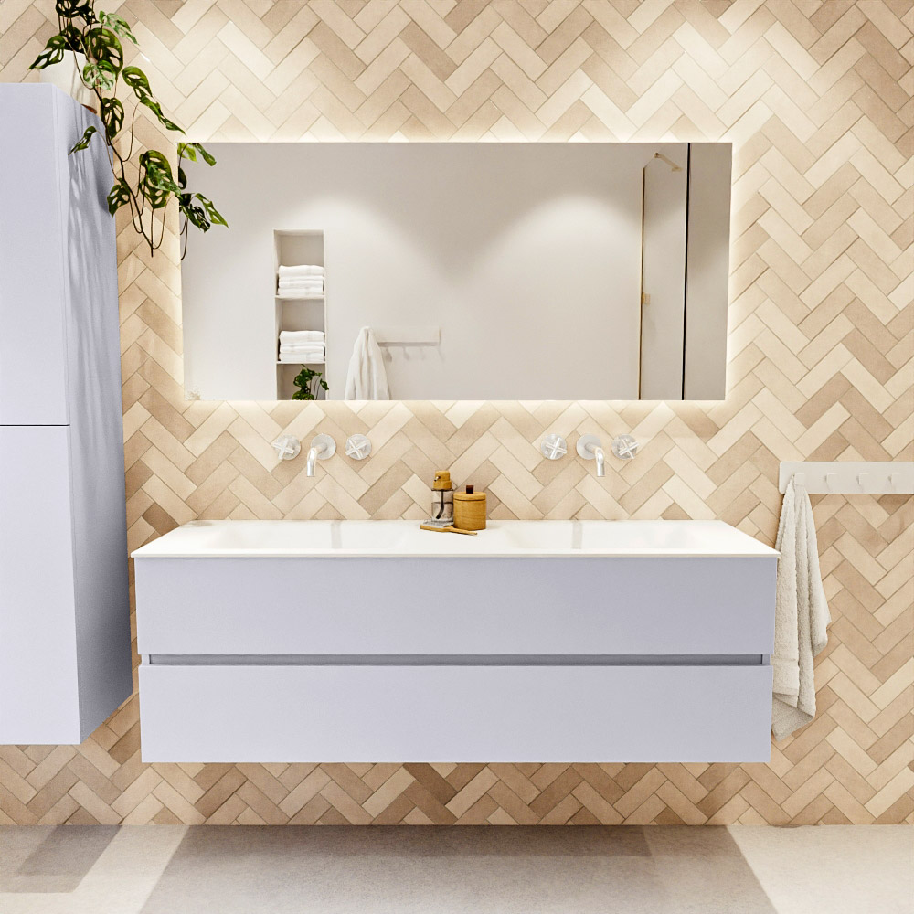 En español: Ya sea que elija un color o un acabado de madera, un mueble de baño a medida, con o sin agujeros para grifos, el conjunto de muebles de baño Vica lo tiene todo. Con la serie Vica, puede elegir entre 3 modelos de lavabos: CLOUD y MOON en Solid Surface, con opciones de lavabo a la derecha, izquierda, en el medio o doble, y con o sin agujeros para grifos. También está el lavabo de cerámica DENIA con opciones en el medio y doble. El conjunto de muebles de baño Vica está disponible en una amplia gama de tamaños estándar, desde 60 cm hasta 200 cm, que aumentan en incrementos de 10 cm. El mueble de baño Vica está disponible en hasta 25 colores, incluyendo nuestros colores especiales Oro y Plata. Si no encuentra el tamaño o color ideal, siempre es posible hacer un pedido a medida. También puede coordinar su baño completo con columnas, bañeras, nichos y accesorios, todos en el mismo color. Con el conjunto de muebles de baño Vica, tendrá un mueble fantástico que completa su baño.