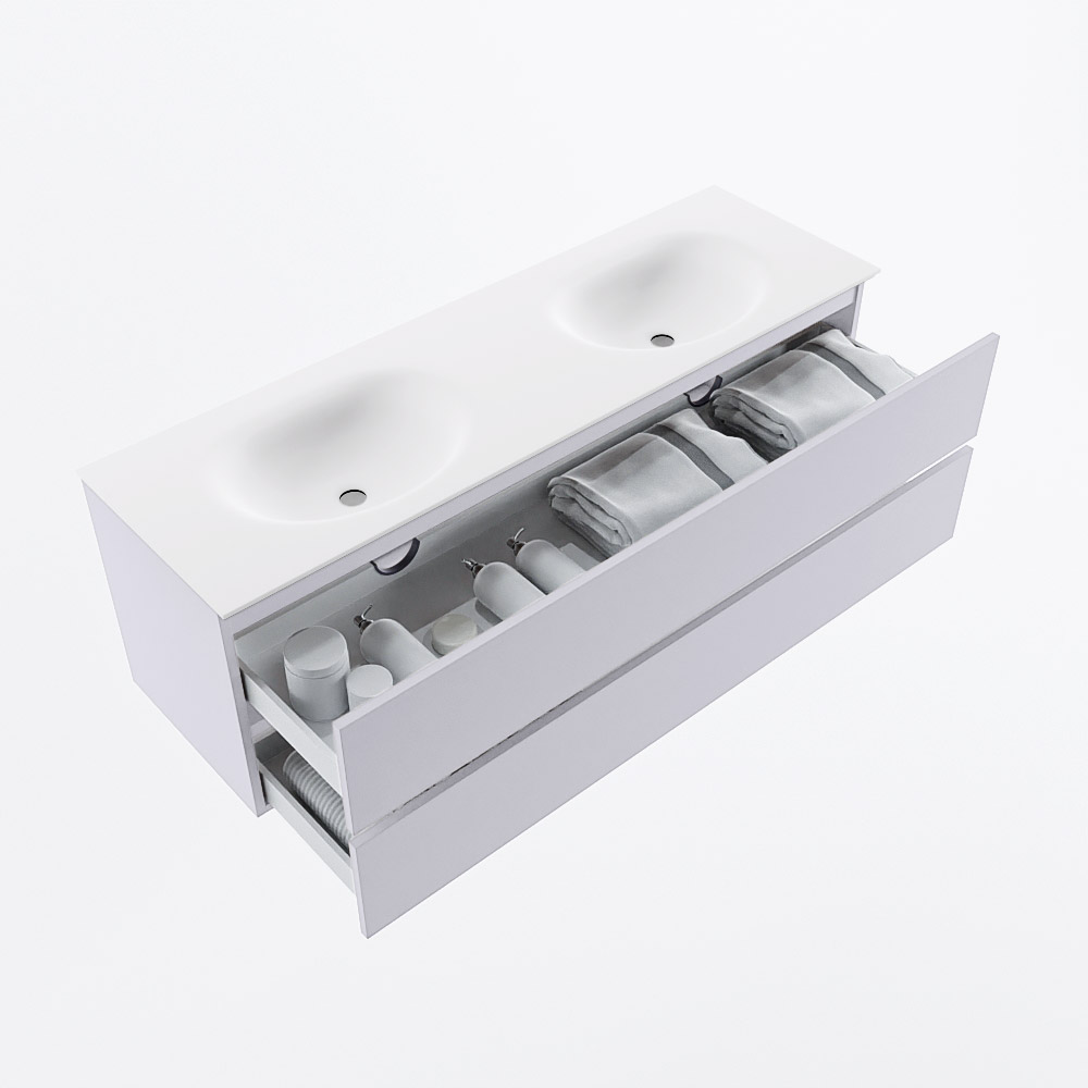 Ya sea que elija un color o un acabado de madera, un mueble de baño a medida, con o sin agujeros para grifos, el conjunto de muebles de baño Vica lo tiene todo. Con la serie Vica, puede elegir entre 3 modelos de lavabos: CLOUD y MOON en Solid Surface, con opciones de lavabo a la derecha, izquierda, en el medio o doble, y con o sin agujeros para grifos. También está el lavabo de cerámica DENIA con opciones en el medio y doble. El conjunto de muebles de baño Vica está disponible en una amplia gama de tamaños estándar, desde 60 cm hasta 200 cm, que aumentan en incrementos de 10 cm. El mueble de baño Vica está disponible en hasta 25 colores, incluyendo nuestros colores especiales Oro y Plata. Si no encuentra el tamaño o color ideal, siempre es posible hacer un pedido a medida. También puede coordinar su baño completo con columnas, bañeras, nichos y accesorios, todos en el mismo color. Con el conjunto de muebles de baño Vica, tendrá un mueble fantástico que completa su baño.