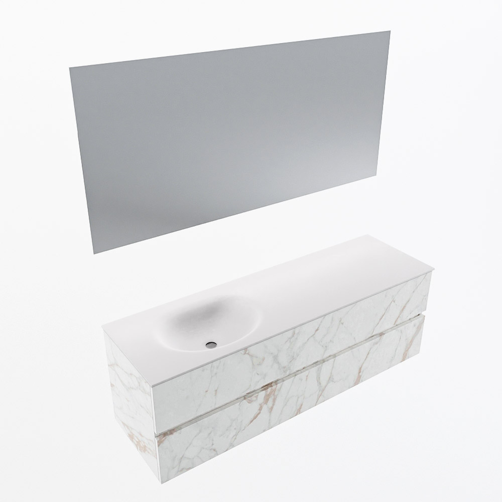 MONDIAZ VICA 150cm mueble de baño Carrara 2 cajones. Lavabo MOON Izquierda 1 orificio color Talc con espejo LED.