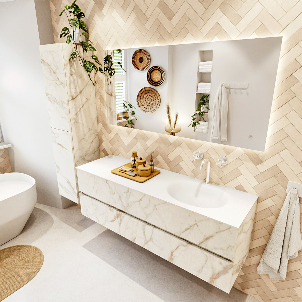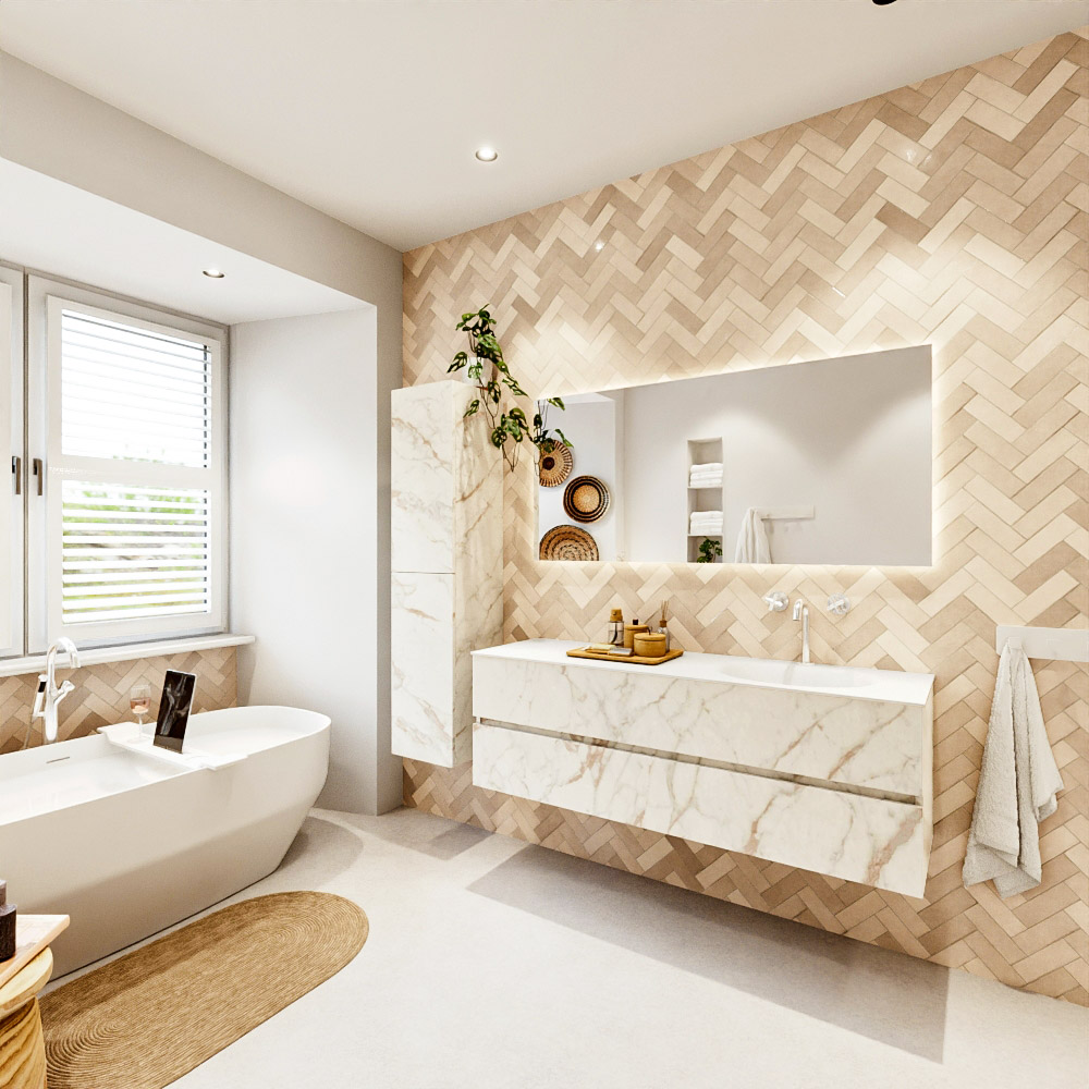 En español: Ya sea que elija un color o un acabado de madera, un mueble de baño a medida, con o sin agujeros para grifos, el conjunto de muebles de baño Vica lo tiene todo. Con la serie Vica, puede elegir entre 3 modelos de lavabos: CLOUD y MOON en Solid Surface, con opciones de lavabo a la derecha, izquierda, en el medio o doble, y con o sin agujeros para grifos. También está el lavabo de cerámica DENIA con opciones en el medio y doble. El conjunto de muebles de baño Vica está disponible en una amplia gama de tamaños estándar, desde 60 cm hasta 200 cm, que aumentan en incrementos de 10 cm. El mueble de baño Vica está disponible en hasta 25 colores, incluyendo nuestros colores especiales Oro y Plata. Si no encuentra el tamaño o color ideal, siempre es posible hacer un pedido a medida. También puede coordinar su baño completo con columnas, bañeras, nichos y accesorios, todos en el mismo color. Con el conjunto de muebles de baño Vica, tendrá un mueble fantástico que completa su baño.