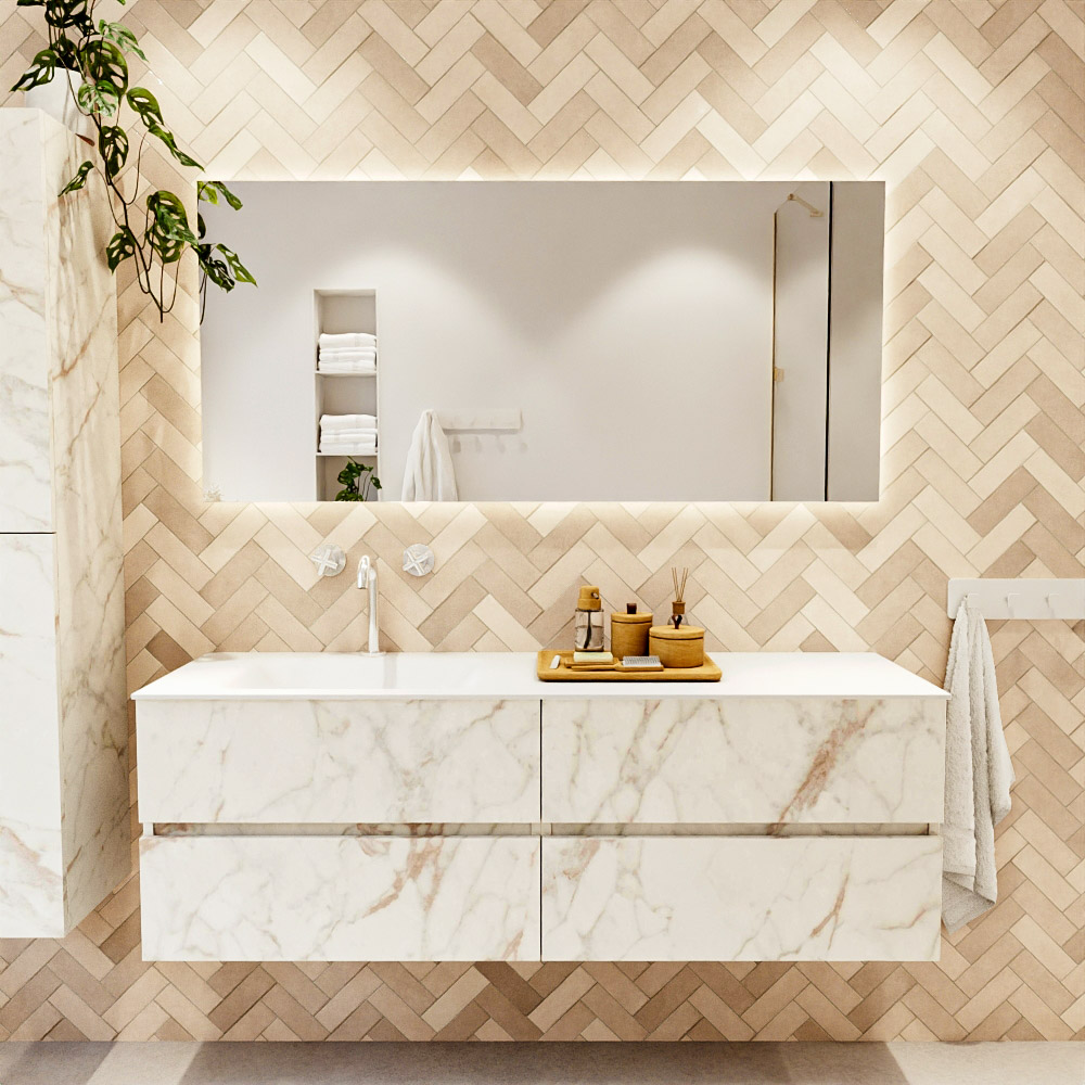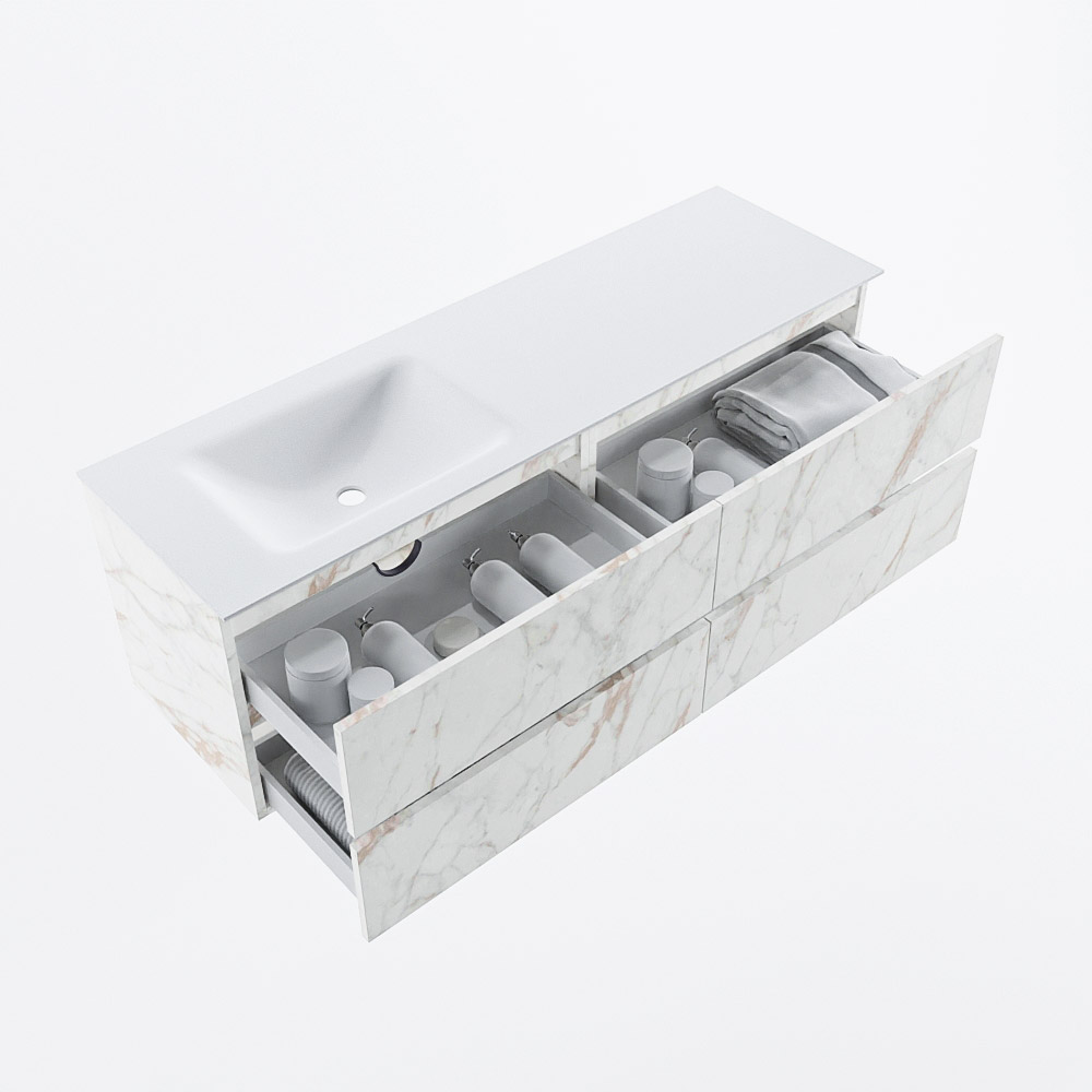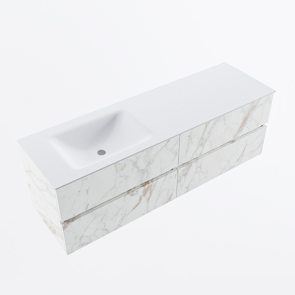 MONDIAZ VICA 150cm mueble de baño Carrara 4 cajones. Lavabo CLOUD Izquierda 1 orificio, color Talc.