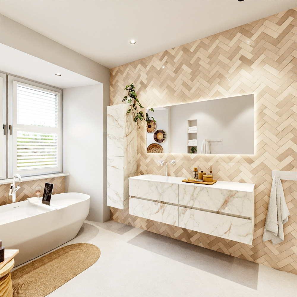 Ya sea que elija un color o un acabado de madera, un mueble de baño a medida, con o sin agujeros para grifos, el conjunto de muebles de baño Vica lo tiene todo. Con la serie Vica, puede elegir entre 3 modelos de lavabos: CLOUD y MOON en Solid Surface, con opciones de lavabo a la derecha, izquierda, en el medio o doble, y con o sin agujeros para grifos. También está el lavabo de cerámica DENIA con opciones en el medio y doble. El conjunto de muebles de baño Vica está disponible en una amplia gama de tamaños estándar, desde 60 cm hasta 200 cm, que aumentan en incrementos de 10 cm. El mueble de baño Vica está disponible en hasta 25 colores, incluyendo nuestros colores especiales Oro y Plata. Si no encuentra el tamaño o color ideal, siempre es posible hacer un pedido a medida. También puede coordinar su baño completo con columnas, bañeras, nichos y accesorios, todos en el mismo color. Con el conjunto de muebles de baño Vica, tendrá un mueble fantástico que completa su baño.