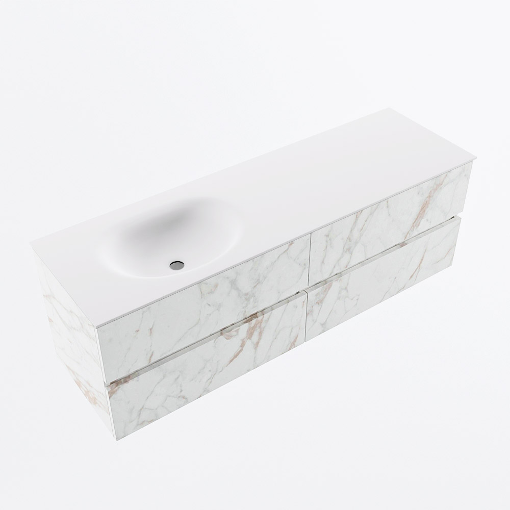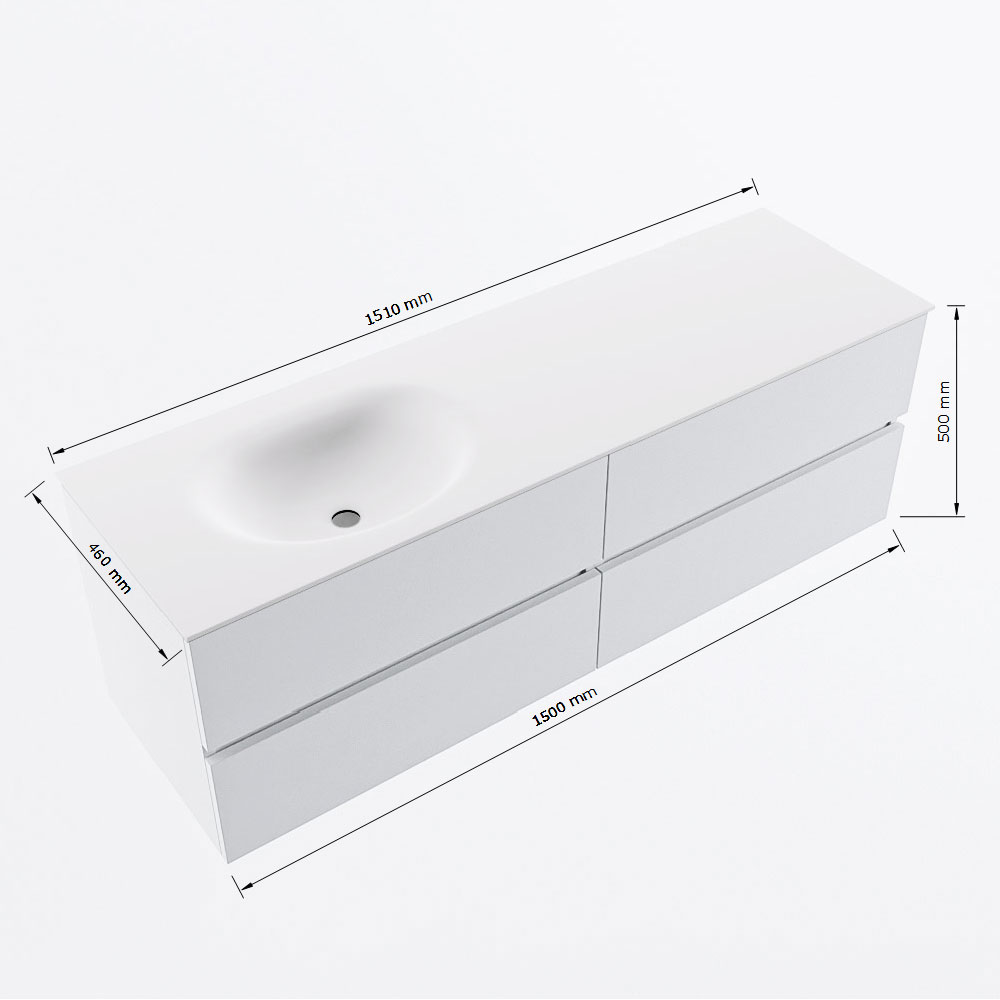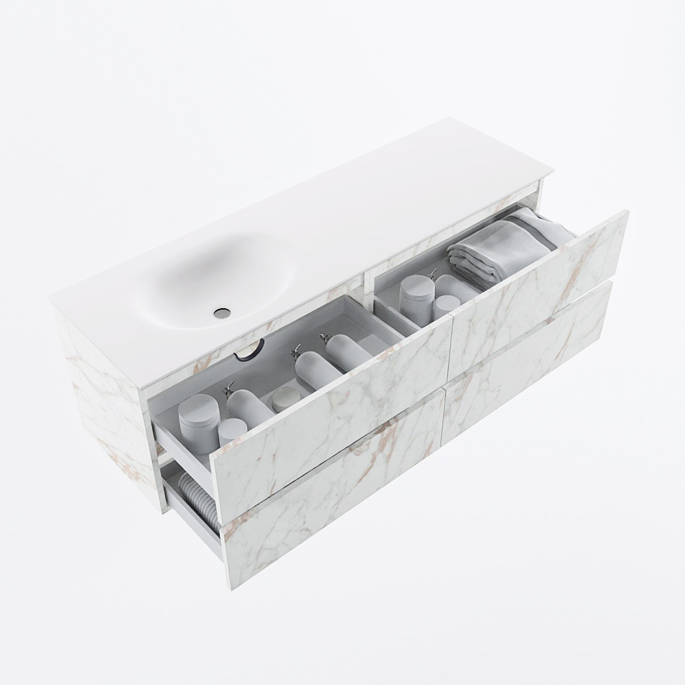 MONDIAZ VICA 150cm mueble de baño Carrara 4 cajones. Lavabo MOON Izquierda 1 orificio, color Talc.
