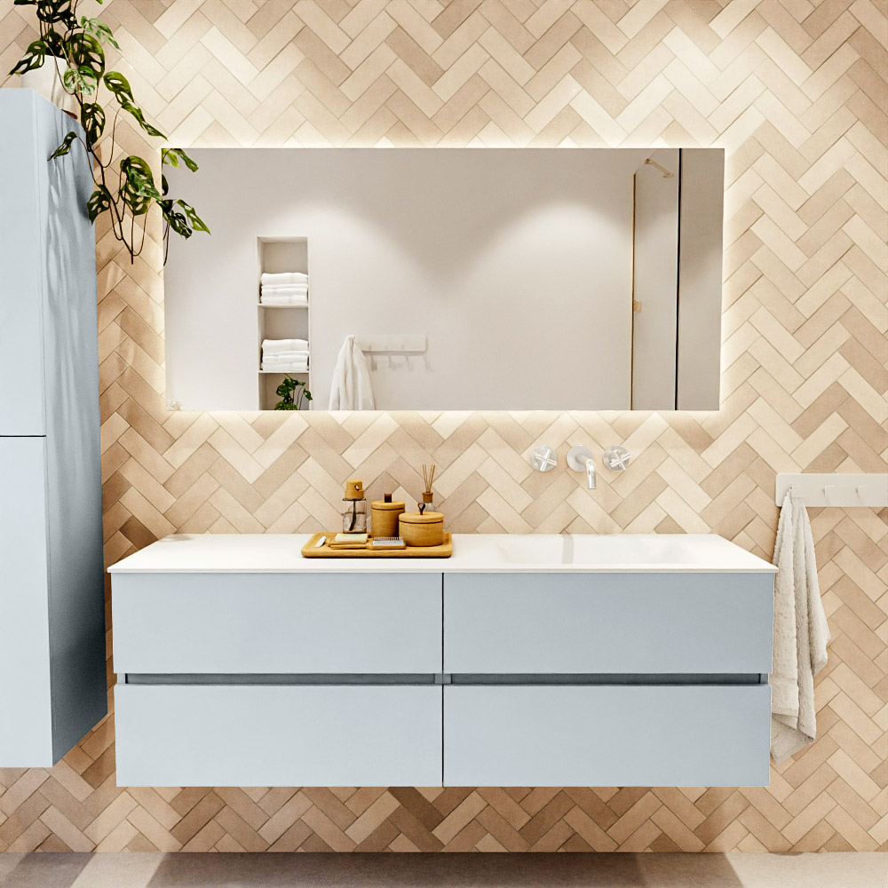 En español: Ya sea que elija un color o un acabado de madera, un mueble de baño a medida, con o sin agujeros para grifos, el conjunto de muebles de baño Vica lo tiene todo. Con la serie Vica, puede elegir entre 3 modelos de lavabos: CLOUD y MOON en Solid Surface, con opciones de lavabo a la derecha, izquierda, en el medio o doble, y con o sin agujeros para grifos. También está el lavabo de cerámica DENIA con opciones en el medio y doble. El conjunto de muebles de baño Vica está disponible en una amplia gama de tamaños estándar, desde 60 cm hasta 200 cm, que aumentan en incrementos de 10 cm. El mueble de baño Vica está disponible en hasta 25 colores, incluyendo nuestros colores especiales Oro y Plata. Si no encuentra el tamaño o color ideal, siempre es posible hacer un pedido a medida. También puede coordinar su baño completo con columnas, bañeras, nichos y accesorios, todos en el mismo color. Con el conjunto de muebles de baño Vica, tendrá un mueble fantástico que completa su baño.