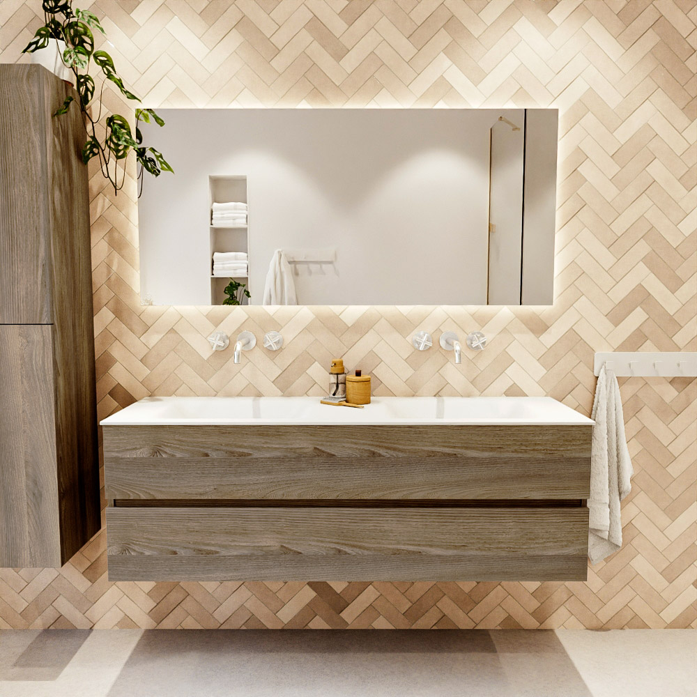 Ya sea que elija un color o un acabado de madera, un mueble de baño a medida, con o sin agujeros para grifos, el conjunto de muebles de baño Vica lo tiene todo. Con la serie Vica, puede elegir entre 3 modelos de lavabos: CLOUD y MOON en Solid Surface, con opciones de lavabo a la derecha, izquierda, en el medio o doble, y con o sin agujeros para grifos. También está el lavabo de cerámica DENIA con opciones en el medio y doble. El conjunto de muebles de baño Vica está disponible en una amplia gama de tamaños estándar, desde 60 cm hasta 200 cm, que aumentan en incrementos de 10 cm. El mueble de baño Vica está disponible en hasta 25 colores, incluyendo nuestros colores especiales Oro y Plata. Si no encuentra el tamaño o color ideal, siempre es posible hacer un pedido a medida. También puede coordinar su baño completo con columnas, bañeras, nichos y accesorios, todos en el mismo color. Con el conjunto de muebles de baño Vica, tendrá un mueble fantástico que completa su baño.