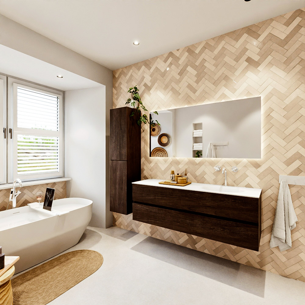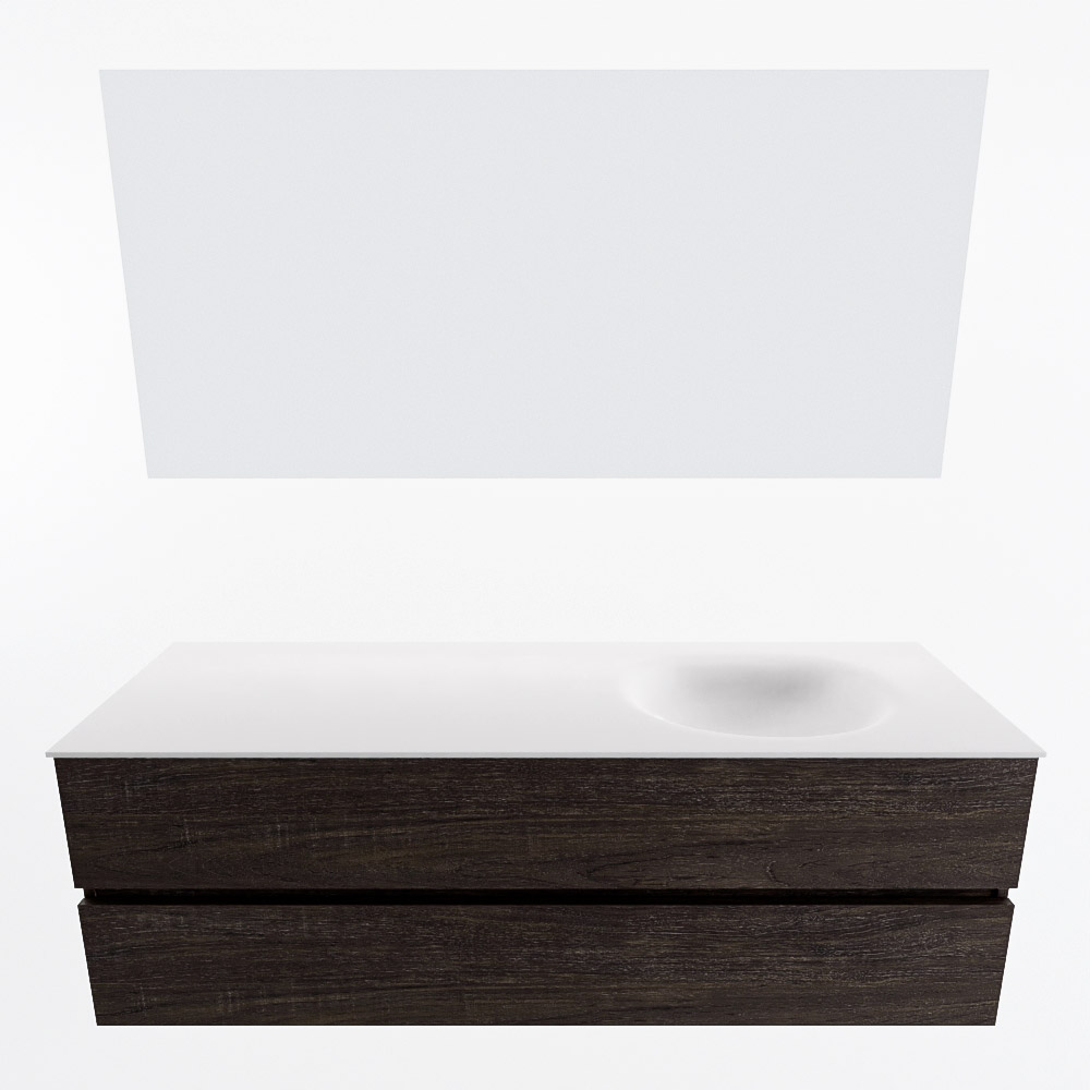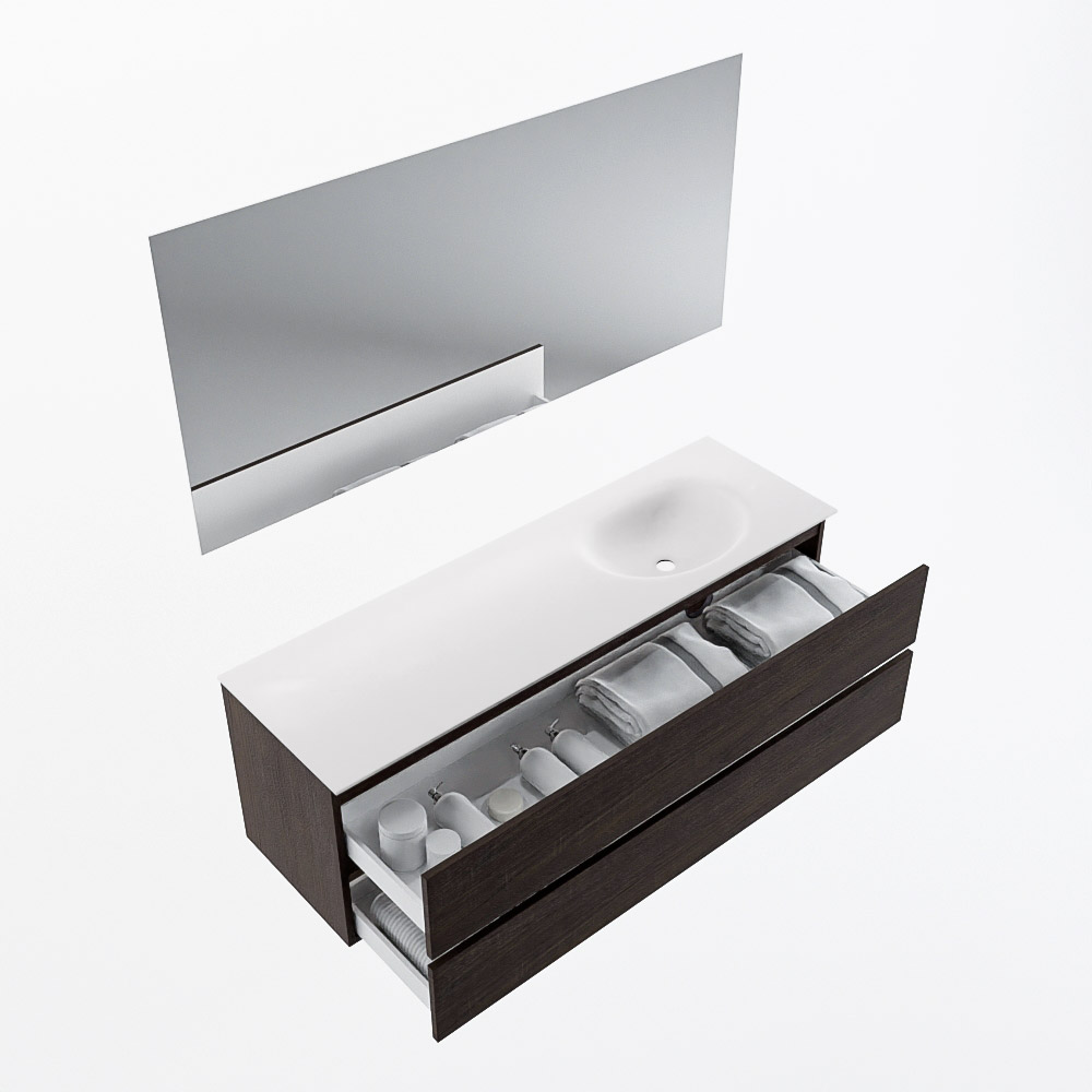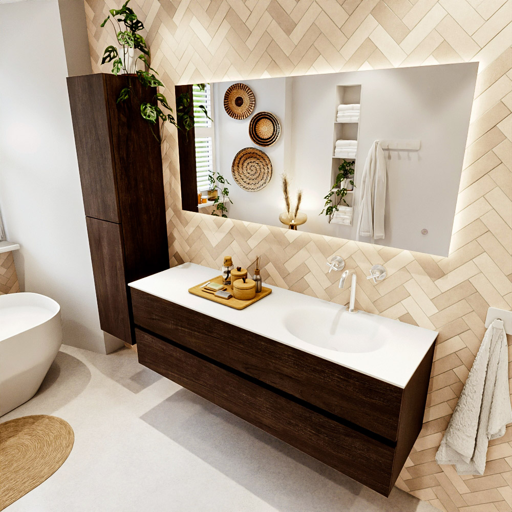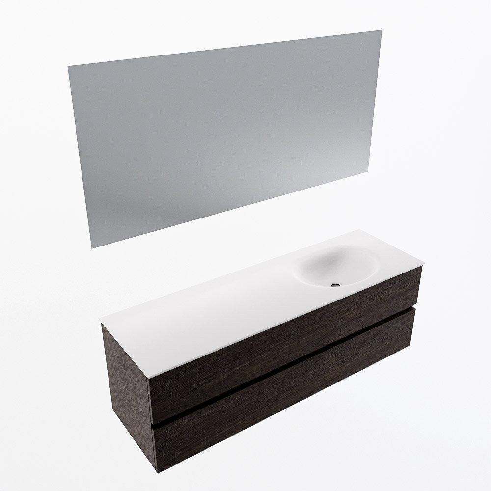 MONDIAZ VICA 150cm mueble de baño Dark Brown 2 cajones. Lavabo MOON Derecho 1 orificio color Talc con espejo LED.