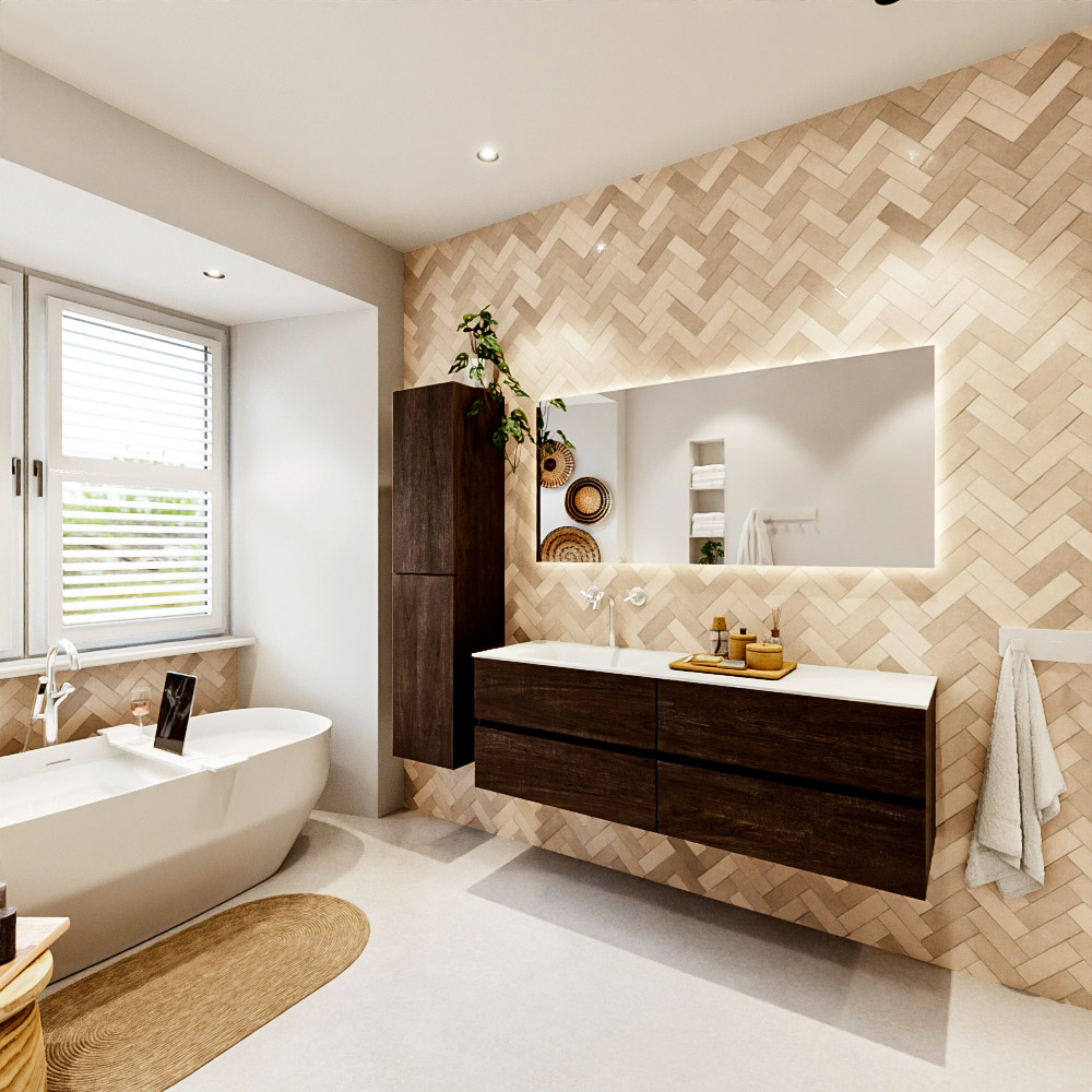 Ya sea que elija un color o un acabado de madera, un mueble de baño a medida, con o sin agujeros para grifos, el conjunto de muebles de baño Vica lo tiene todo. Con la serie Vica, puede elegir entre 3 modelos de lavabos: CLOUD y MOON en Solid Surface, con opciones de lavabo a la derecha, izquierda, en el medio o doble, y con o sin agujeros para grifos. También está el lavabo de cerámica DENIA con opciones en el medio y doble. El conjunto de muebles de baño Vica está disponible en una amplia gama de tamaños estándar, desde 60 cm hasta 200 cm, que aumentan en incrementos de 10 cm. El mueble de baño Vica está disponible en hasta 25 colores, incluyendo nuestros colores especiales Oro y Plata. Si no encuentra el tamaño o color ideal, siempre es posible hacer un pedido a medida. También puede coordinar su baño completo con columnas, bañeras, nichos y accesorios, todos en el mismo color. Con el conjunto de muebles de baño Vica, tendrá un mueble fantástico que completa su baño.