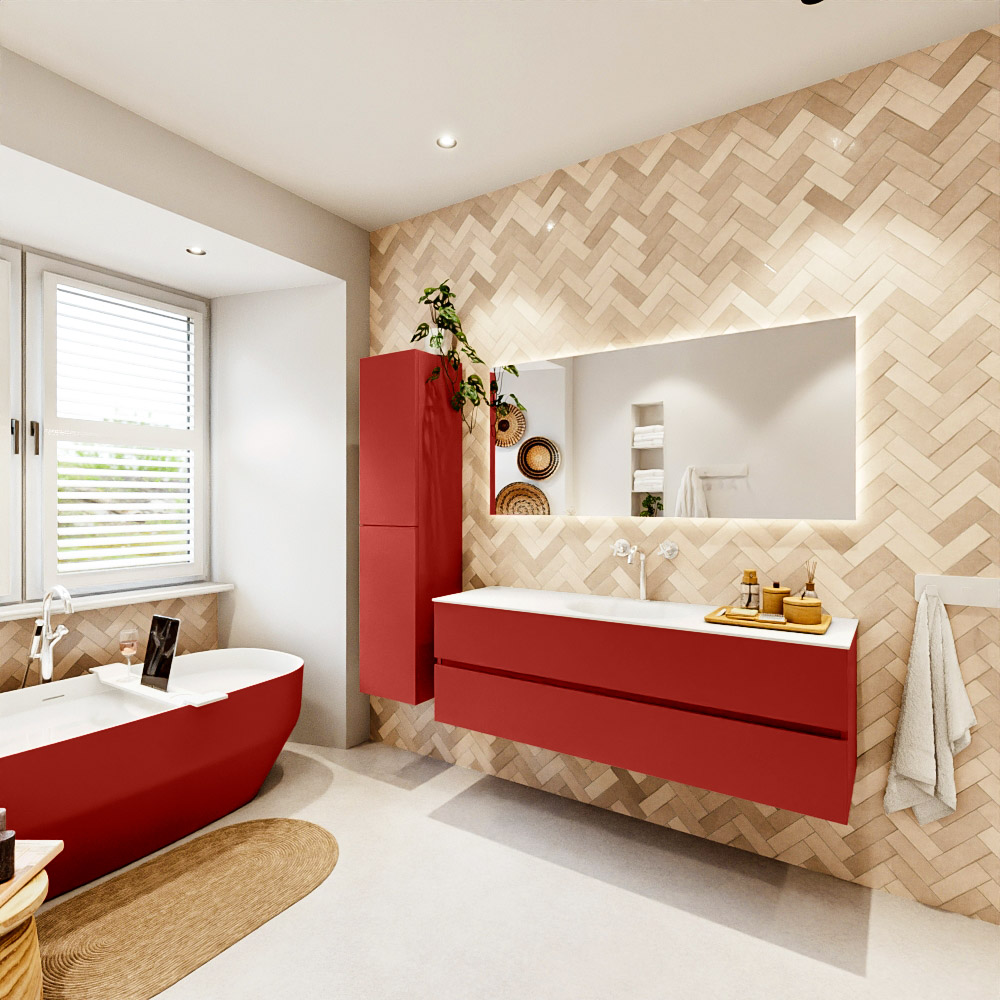 En español: Ya sea que elija un color o un acabado de madera, un mueble de baño a medida, con o sin agujeros para grifos, el conjunto de muebles de baño Vica lo tiene todo. Con la serie Vica, puede elegir entre 3 modelos de lavabos: CLOUD y MOON en Solid Surface, con opciones de lavabo a la derecha, izquierda, en el medio o doble, y con o sin agujeros para grifos. También está el lavabo de cerámica DENIA con opciones en el medio y doble. El conjunto de muebles de baño Vica está disponible en una amplia gama de tamaños estándar, desde 60 cm hasta 200 cm, que aumentan en incrementos de 10 cm. El mueble de baño Vica está disponible en hasta 25 colores, incluyendo nuestros colores especiales Oro y Plata. Si no encuentra el tamaño o color ideal, siempre es posible hacer un pedido a medida. También puede coordinar su baño completo con columnas, bañeras, nichos y accesorios, todos en el mismo color. Con el conjunto de muebles de baño Vica, tendrá un mueble fantástico que completa su baño.