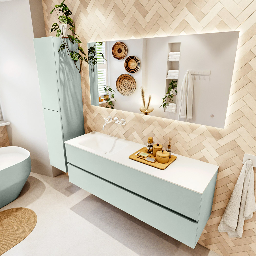 Ya sea que elija un color o un acabado de madera, un mueble de baño a medida, con o sin agujeros para grifos, el conjunto de muebles de baño Vica lo tiene todo. Con la serie Vica, puede elegir entre 3 modelos de lavabos: CLOUD y MOON en Solid Surface, con opciones de lavabo a la derecha, izquierda, en el medio o doble, y con o sin agujeros para grifos. También está el lavabo de cerámica DENIA con opciones en el medio y doble. El conjunto de muebles de baño Vica está disponible en una amplia gama de tamaños estándar, desde 60 cm hasta 200 cm, que aumentan en incrementos de 10 cm. El mueble de baño Vica está disponible en hasta 25 colores, incluyendo nuestros colores especiales Oro y Plata. Si no encuentra el tamaño o color ideal, siempre es posible hacer un pedido a medida. También puede coordinar su baño completo con columnas, bañeras, nichos y accesorios, todos en el mismo color. Con el conjunto de muebles de baño Vica, tendrá un mueble fantástico que completa su baño.
