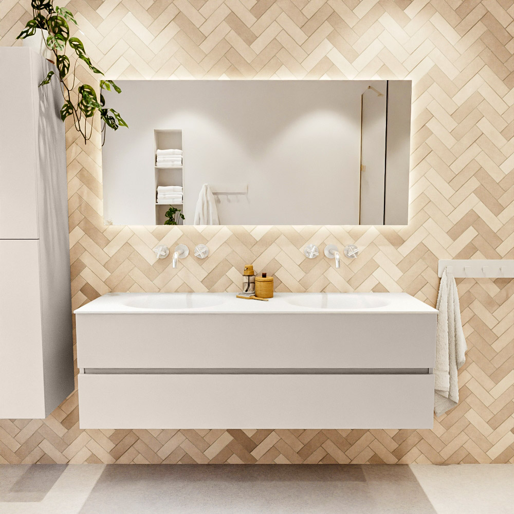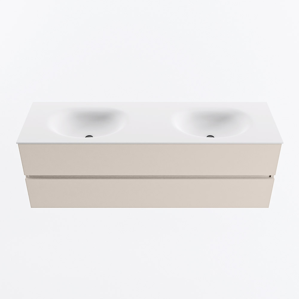 MONDIAZ VICA 150cm mueble de baño Linen 2 cajones. Lavabo MOON Doble sin orificio, color Talc.