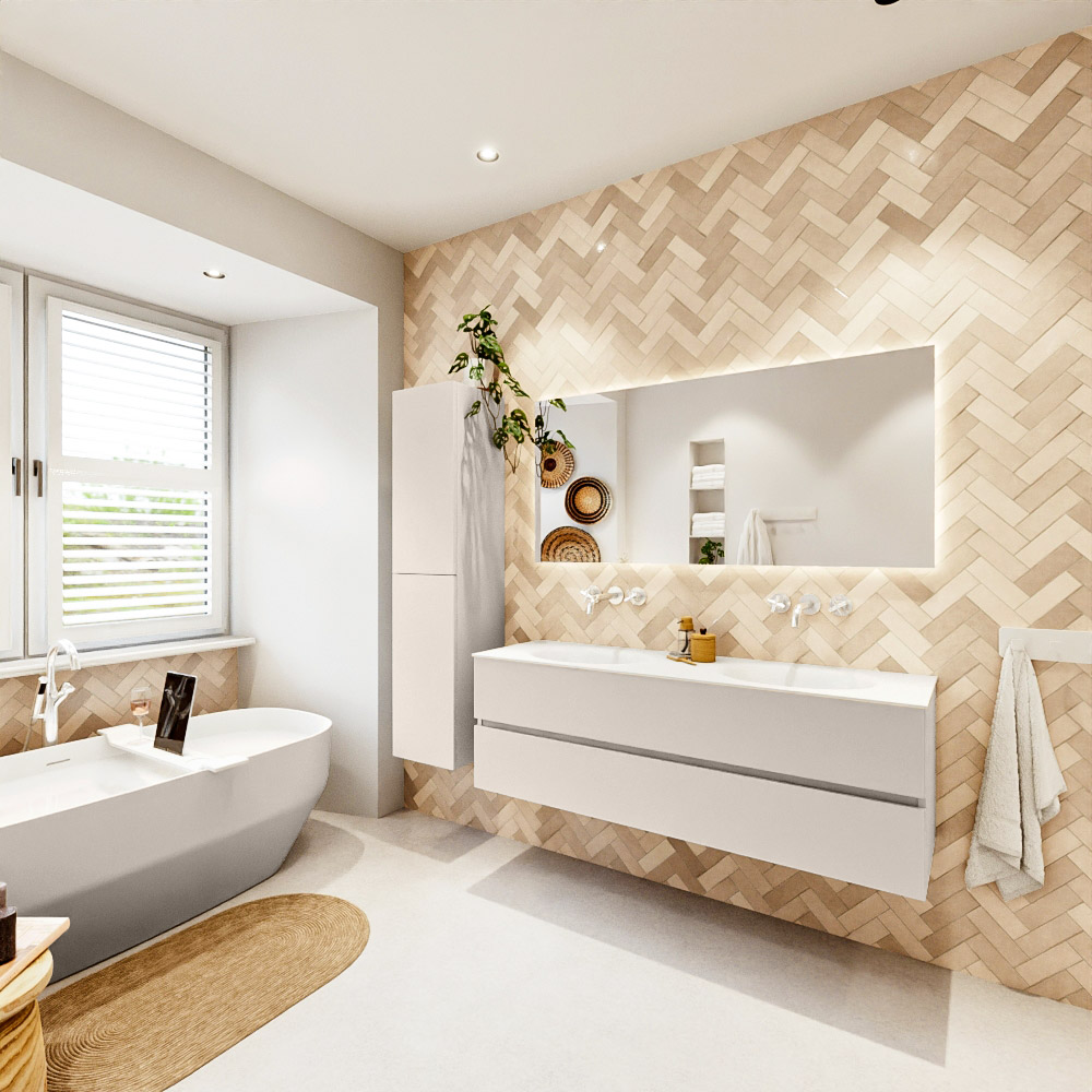 Ya sea que elija un color o un acabado de madera, un mueble de baño a medida, con o sin agujeros para grifos, el conjunto de muebles de baño Vica lo tiene todo. Con la serie Vica, puede elegir entre 3 modelos de lavabos: CLOUD y MOON en Solid Surface, con opciones de lavabo a la derecha, izquierda, en el medio o doble, y con o sin agujeros para grifos. También está el lavabo de cerámica DENIA con opciones en el medio y doble. El conjunto de muebles de baño Vica está disponible en una amplia gama de tamaños estándar, desde 60 cm hasta 200 cm, que aumentan en incrementos de 10 cm. El mueble de baño Vica está disponible en hasta 25 colores, incluyendo nuestros colores especiales Oro y Plata. Si no encuentra el tamaño o color ideal, siempre es posible hacer un pedido a medida. También puede coordinar su baño completo con columnas, bañeras, nichos y accesorios, todos en el mismo color. Con el conjunto de muebles de baño Vica, tendrá un mueble fantástico que completa su baño.