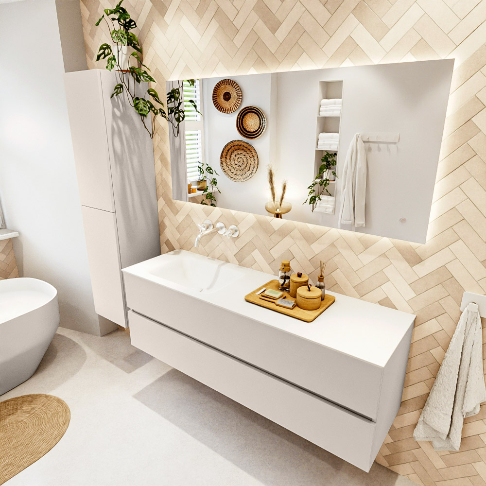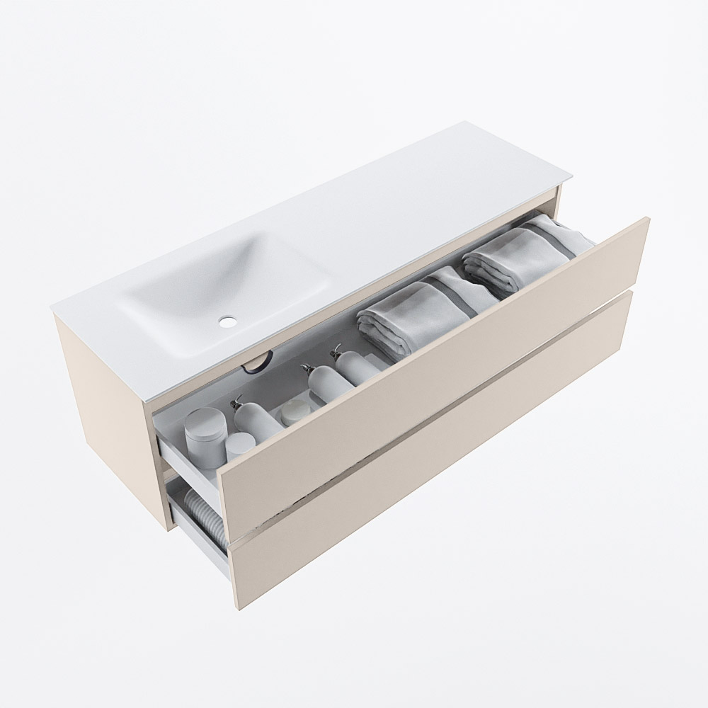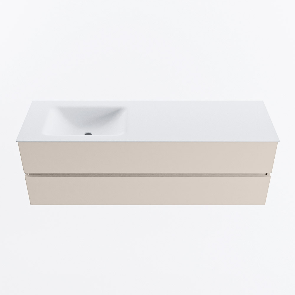 MONDIAZ VICA 150cm mueble de baño Linen 2 cajones. Lavabo CLOUD Izquierda sin orificio, color Talc.
