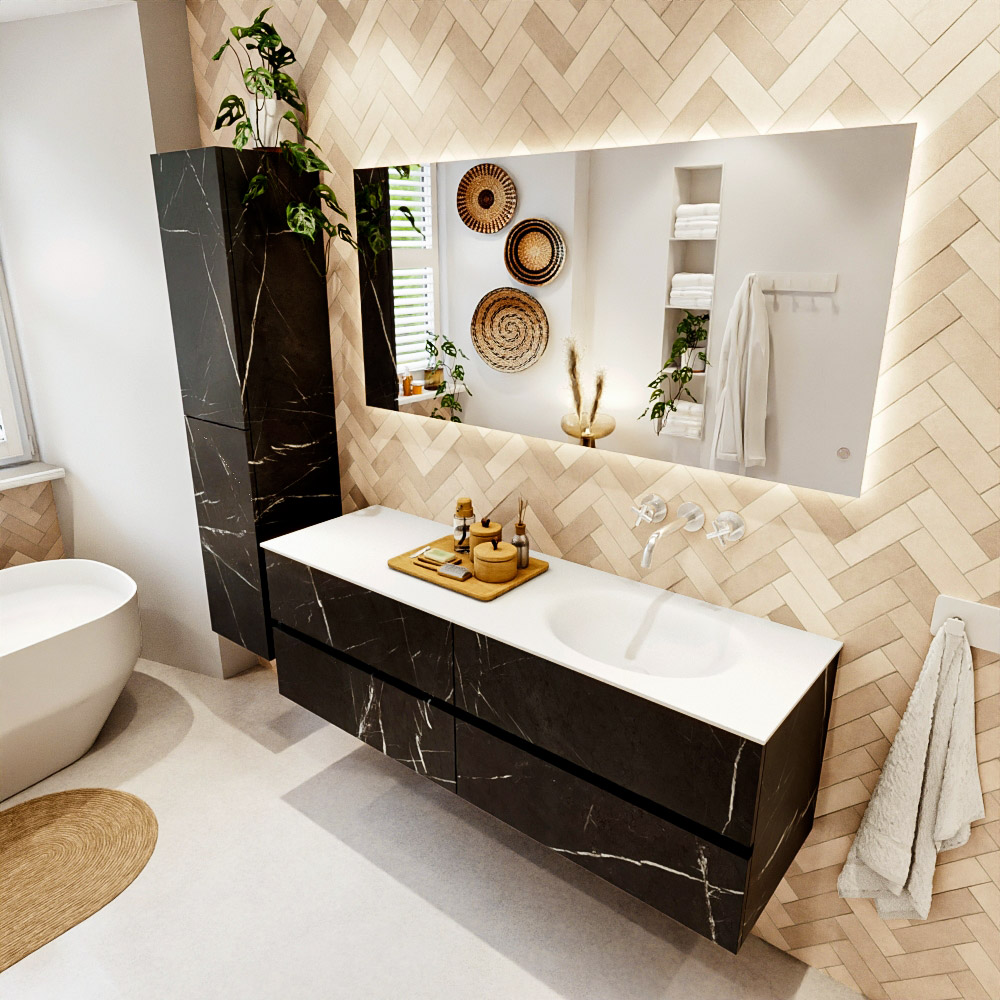 Ya sea que elija un color o un acabado de madera, un mueble de baño a medida, con o sin agujeros para grifos, el conjunto de muebles de baño Vica lo tiene todo. Con la serie Vica, puede elegir entre 3 modelos de lavabos: CLOUD y MOON en Solid Surface, con opciones de lavabo a la derecha, izquierda, en el medio o doble, y con o sin agujeros para grifos. También está el lavabo de cerámica DENIA con opciones en el medio y doble. El conjunto de muebles de baño Vica está disponible en una amplia gama de tamaños estándar, desde 60 cm hasta 200 cm, que aumentan en incrementos de 10 cm. El mueble de baño Vica está disponible en hasta 25 colores, incluyendo nuestros colores especiales Oro y Plata. Si no encuentra el tamaño o color ideal, siempre es posible hacer un pedido a medida. También puede coordinar su baño completo con columnas, bañeras, nichos y accesorios, todos en el mismo color. Con el conjunto de muebles de baño Vica, tendrá un mueble fantástico que completa su baño.