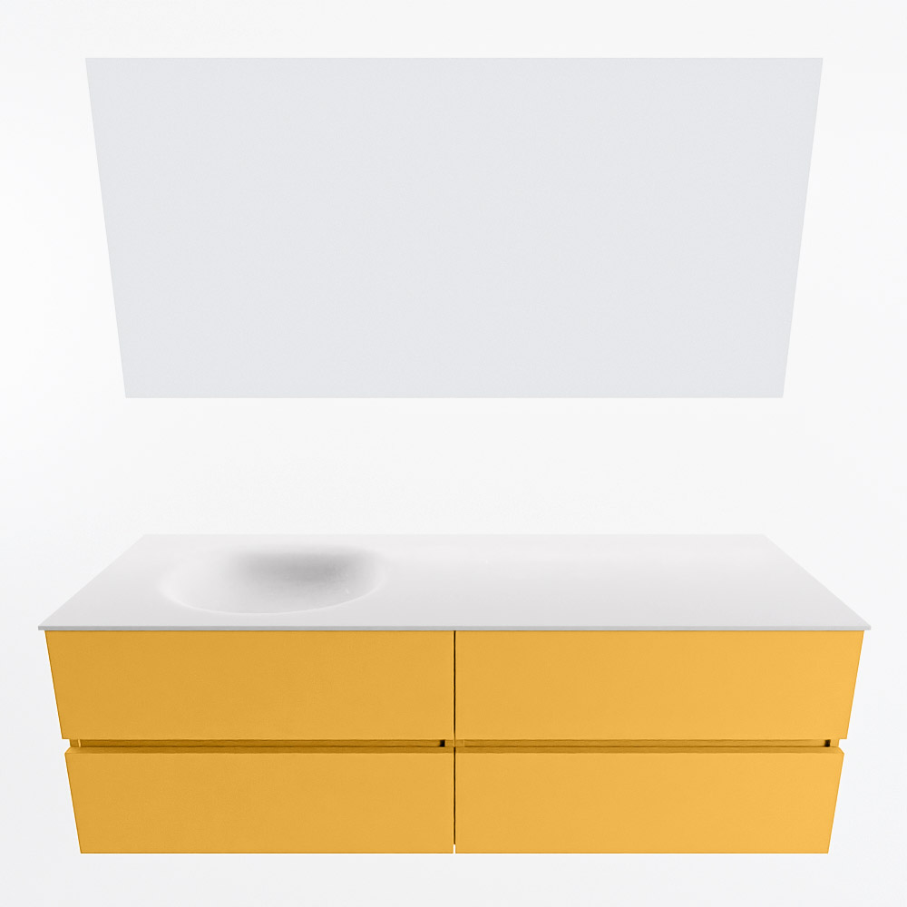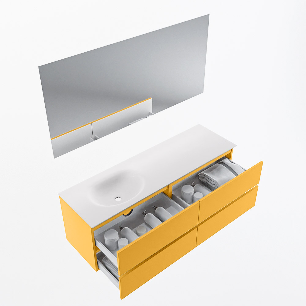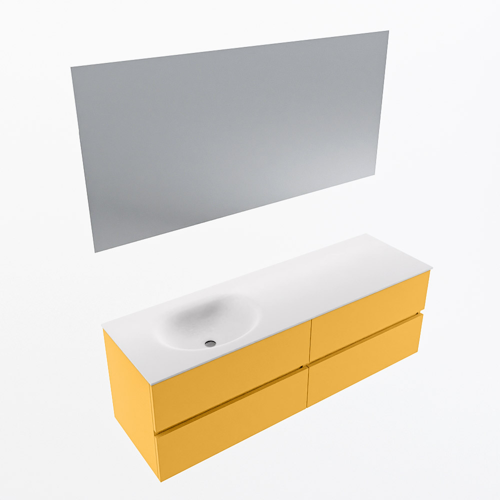 MONDIAZ VICA 150cm mueble de baño Ocher 4 cajones. Lavabo MOON Izquierda 1 orificio color Talc con espejo LED.