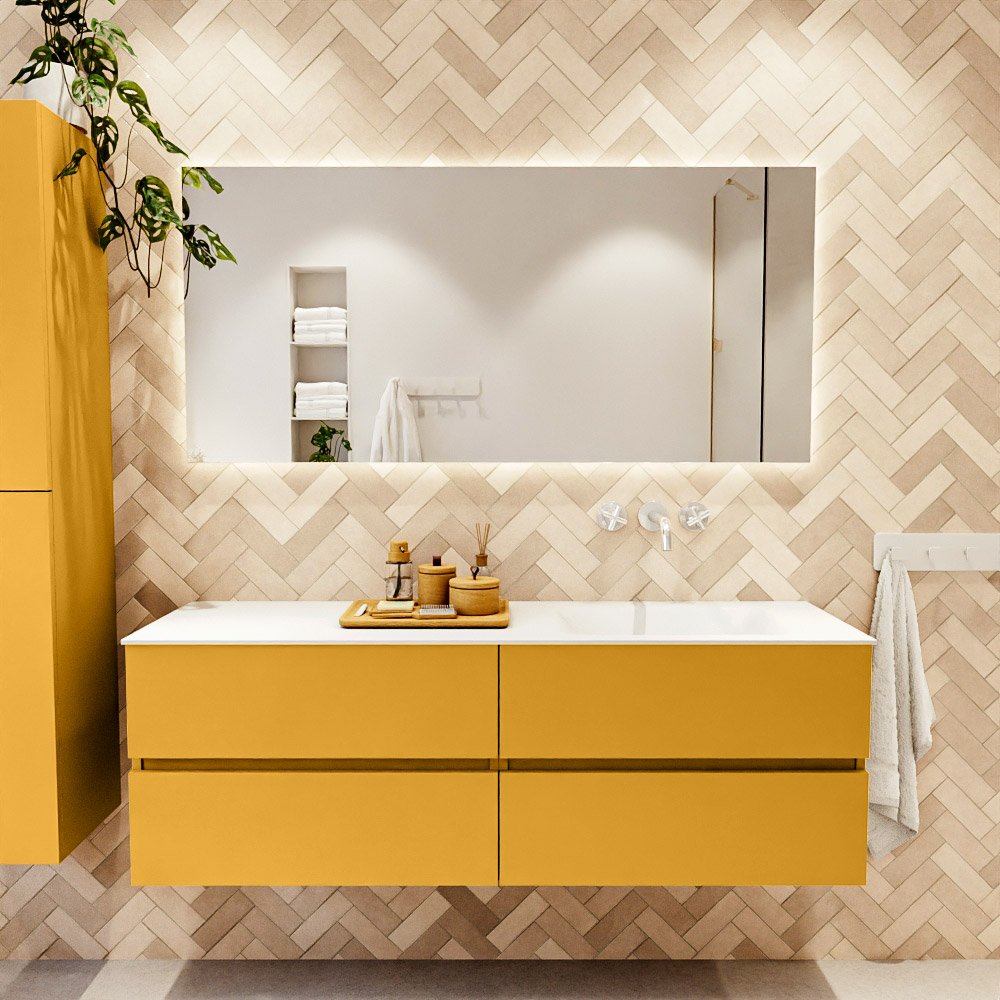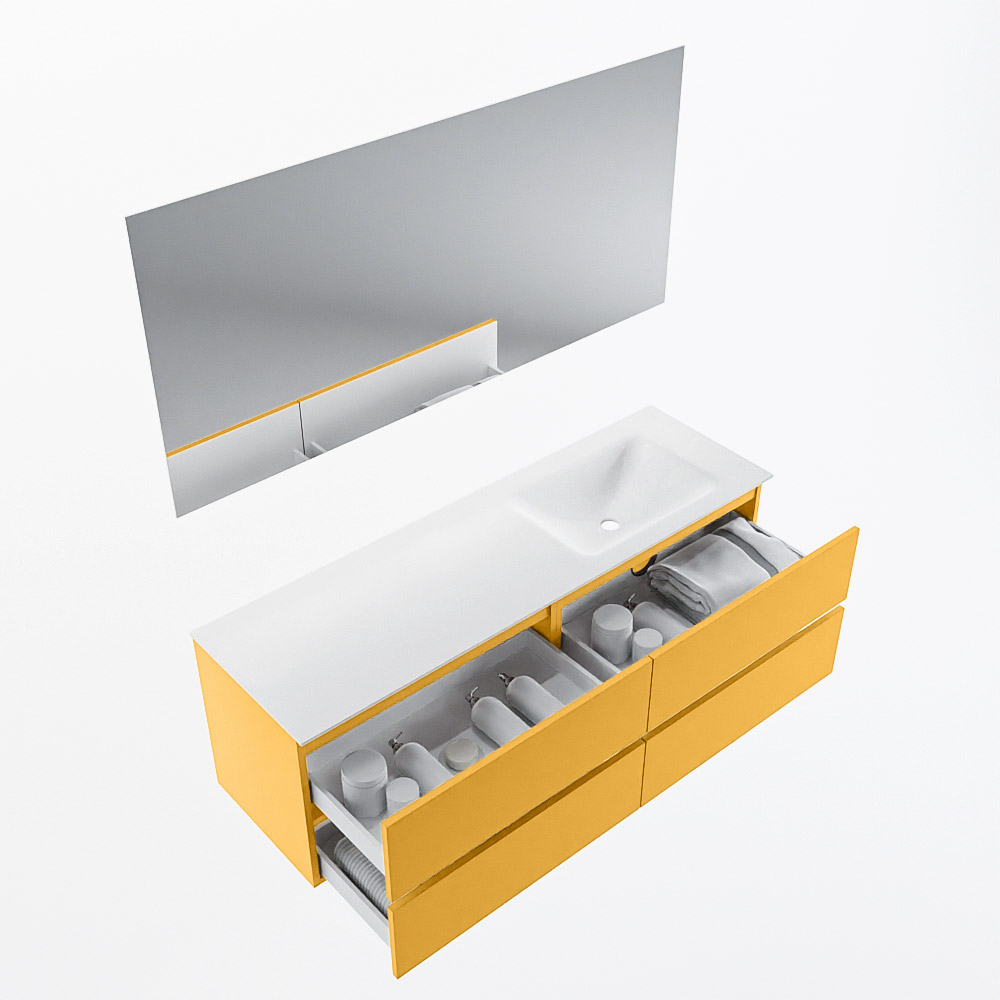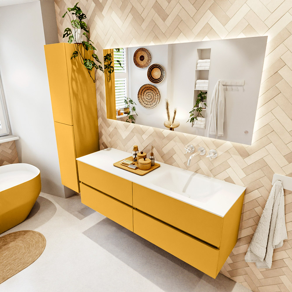 En español: Ya sea que elija un color o un acabado de madera, un mueble de baño a medida, con o sin agujeros para grifos, el conjunto de muebles de baño Vica lo tiene todo. Con la serie Vica, puede elegir entre 3 modelos de lavabos: CLOUD y MOON en Solid Surface, con opciones de lavabo a la derecha, izquierda, en el medio o doble, y con o sin agujeros para grifos. También está el lavabo de cerámica DENIA con opciones en el medio y doble. El conjunto de muebles de baño Vica está disponible en una amplia gama de tamaños estándar, desde 60 cm hasta 200 cm, que aumentan en incrementos de 10 cm. El mueble de baño Vica está disponible en hasta 25 colores, incluyendo nuestros colores especiales Oro y Plata. Si no encuentra el tamaño o color ideal, siempre es posible hacer un pedido a medida. También puede coordinar su baño completo con columnas, bañeras, nichos y accesorios, todos en el mismo color. Con el conjunto de muebles de baño Vica, tendrá un mueble fantástico que completa su baño.