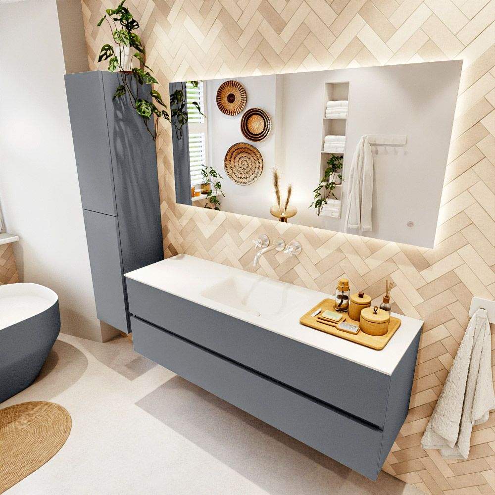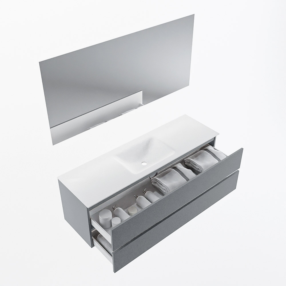 En español: Ya sea que elija un color o un acabado de madera, un mueble de baño a medida, con o sin agujeros para grifos, el conjunto de muebles de baño Vica lo tiene todo. Con la serie Vica, puede elegir entre 3 modelos de lavabos: CLOUD y MOON en Solid Surface, con opciones de lavabo a la derecha, izquierda, en el medio o doble, y con o sin agujeros para grifos. También está el lavabo de cerámica DENIA con opciones en el medio y doble. El conjunto de muebles de baño Vica está disponible en una amplia gama de tamaños estándar, desde 60 cm hasta 200 cm, que aumentan en incrementos de 10 cm. El mueble de baño Vica está disponible en hasta 25 colores, incluyendo nuestros colores especiales Oro y Plata. Si no encuentra el tamaño o color ideal, siempre es posible hacer un pedido a medida. También puede coordinar su baño completo con columnas, bañeras, nichos y accesorios, todos en el mismo color. Con el conjunto de muebles de baño Vica, tendrá un mueble fantástico que completa su baño.