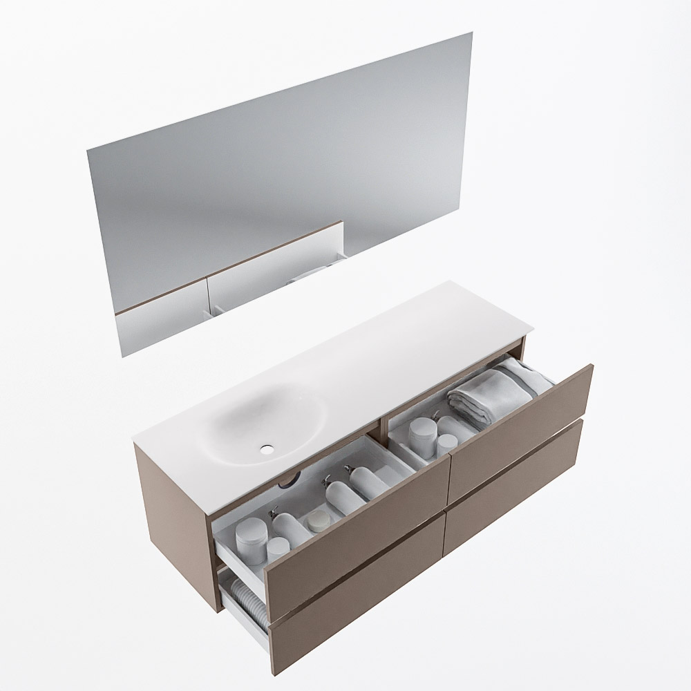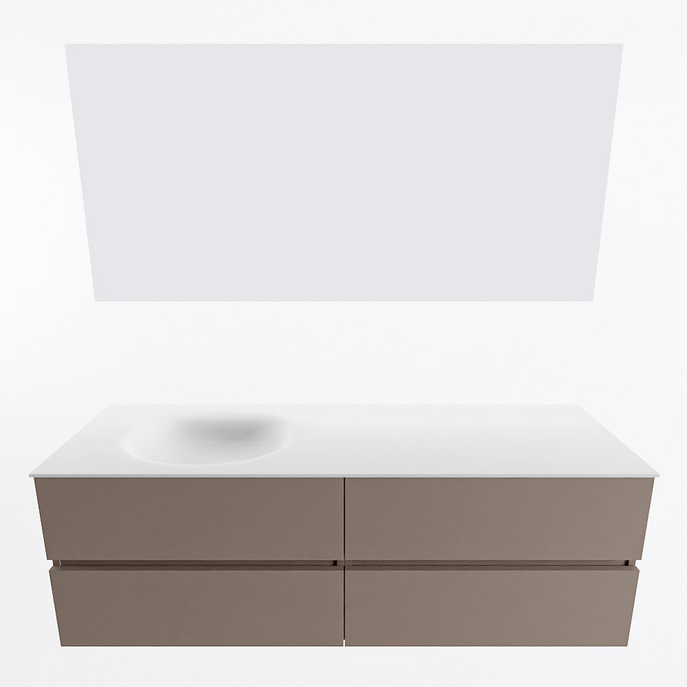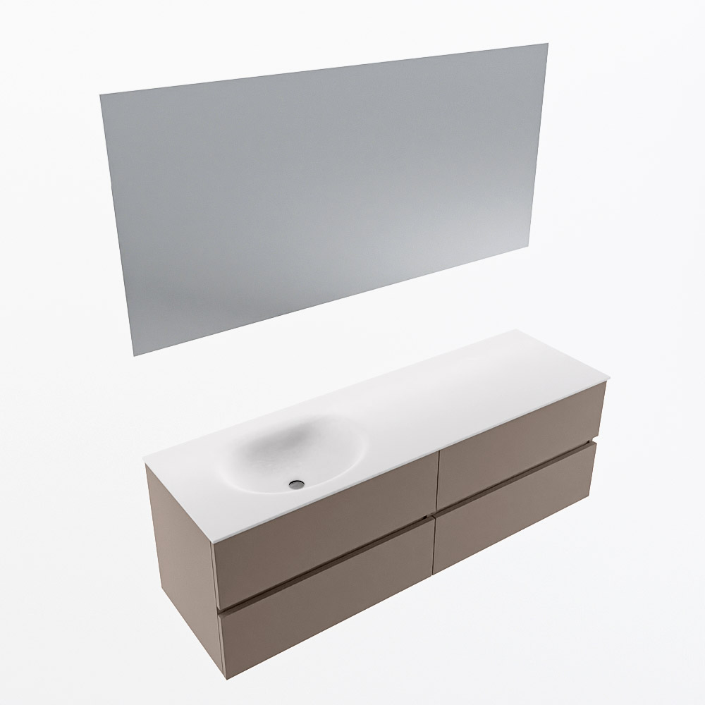 MONDIAZ VICA 150cm mueble de baño Smoke 4 cajones. Lavabo MOON Izquierda 1 orificio color Talc con espejo LED.