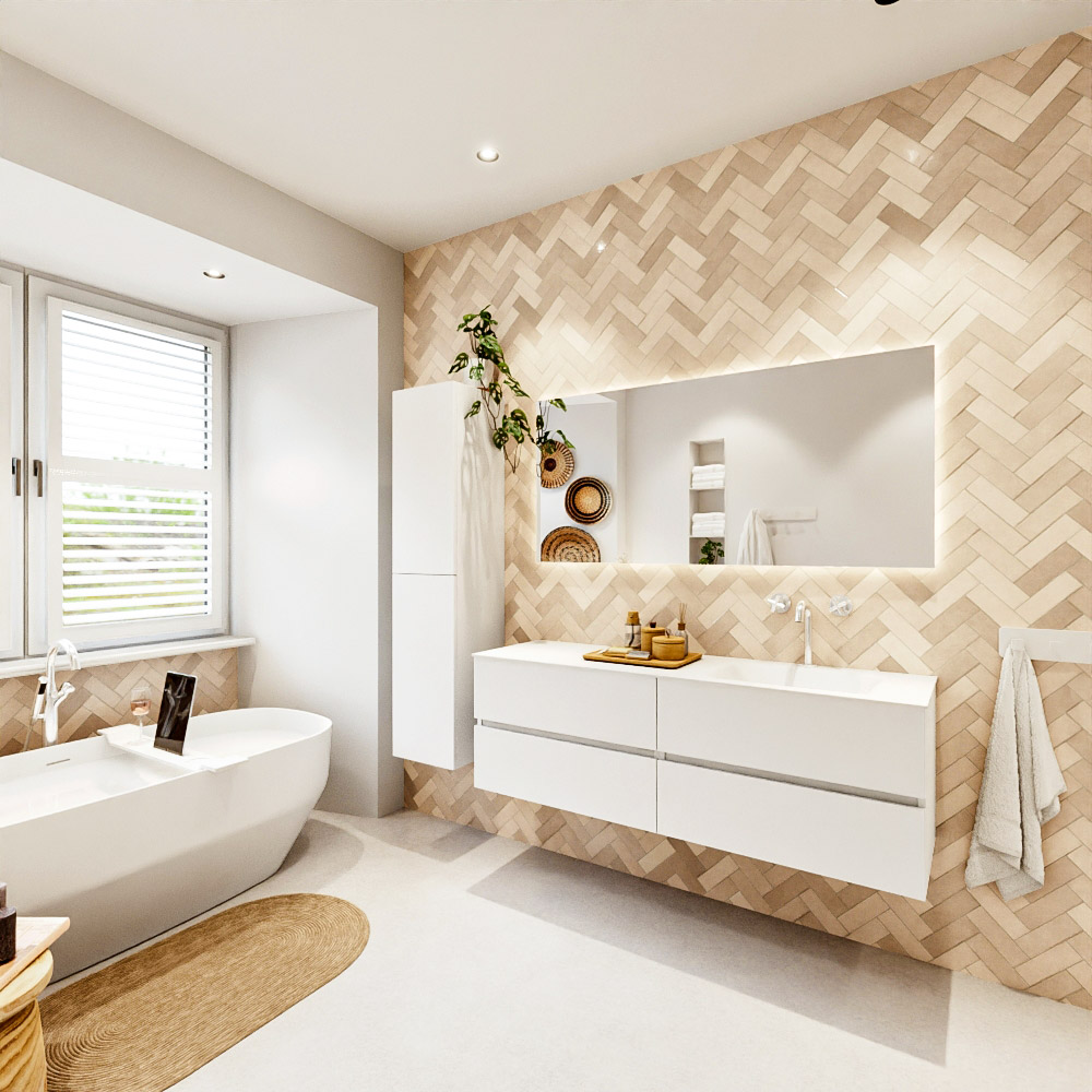 Ya sea que elija un color o un acabado de madera, un mueble de baño a medida, con o sin agujeros para grifos, el conjunto de muebles de baño Vica lo tiene todo. Con la serie Vica, puede elegir entre 3 modelos de lavabos: CLOUD y MOON en Solid Surface, con opciones de lavabo a la derecha, izquierda, en el medio o doble, y con o sin agujeros para grifos. También está el lavabo de cerámica DENIA con opciones en el medio y doble. El conjunto de muebles de baño Vica está disponible en una amplia gama de tamaños estándar, desde 60 cm hasta 200 cm, que aumentan en incrementos de 10 cm. El mueble de baño Vica está disponible en hasta 25 colores, incluyendo nuestros colores especiales Oro y Plata. Si no encuentra el tamaño o color ideal, siempre es posible hacer un pedido a medida. También puede coordinar su baño completo con columnas, bañeras, nichos y accesorios, todos en el mismo color. Con el conjunto de muebles de baño Vica, tendrá un mueble fantástico que completa su baño.