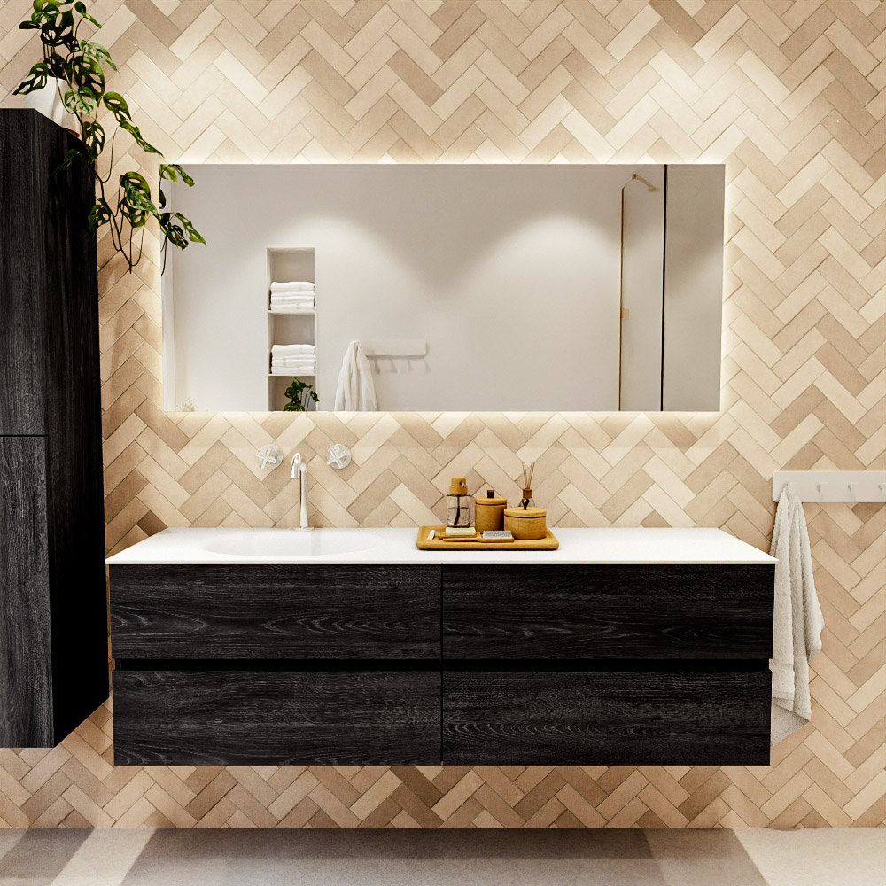 En español: Ya sea que elija un color o un acabado de madera, un mueble de baño a medida, con o sin agujeros para grifos, el conjunto de muebles de baño Vica lo tiene todo. Con la serie Vica, puede elegir entre 3 modelos de lavabos: CLOUD y MOON en Solid Surface, con opciones de lavabo a la derecha, izquierda, en el medio o doble, y con o sin agujeros para grifos. También está el lavabo de cerámica DENIA con opciones en el medio y doble. El conjunto de muebles de baño Vica está disponible en una amplia gama de tamaños estándar, desde 60 cm hasta 200 cm, que aumentan en incrementos de 10 cm. El mueble de baño Vica está disponible en hasta 25 colores, incluyendo nuestros colores especiales Oro y Plata. Si no encuentra el tamaño o color ideal, siempre es posible hacer un pedido a medida. También puede coordinar su baño completo con columnas, bañeras, nichos y accesorios, todos en el mismo color. Con el conjunto de muebles de baño Vica, tendrá un mueble fantástico que completa su baño.