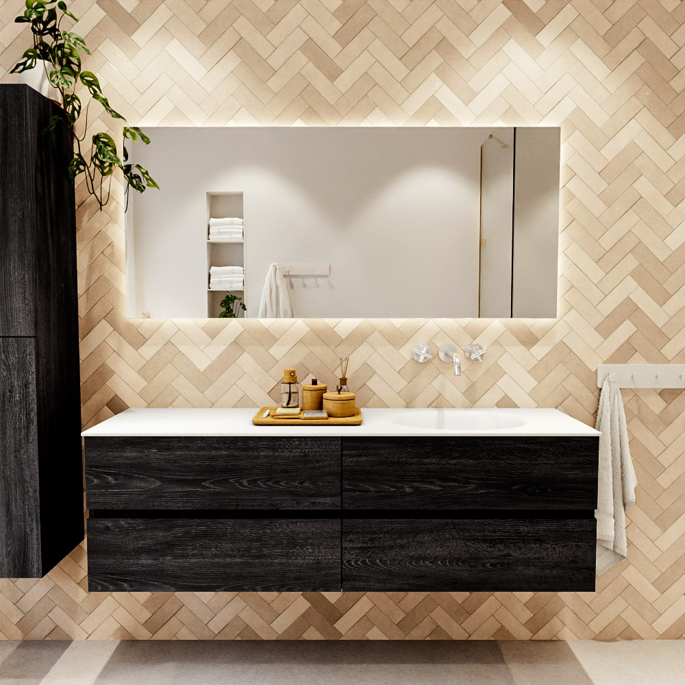 En español: Ya sea que elija un color o un acabado de madera, un mueble de baño a medida, con o sin agujeros para grifos, el conjunto de muebles de baño Vica lo tiene todo. Con la serie Vica, puede elegir entre 3 modelos de lavabos: CLOUD y MOON en Solid Surface, con opciones de lavabo a la derecha, izquierda, en el medio o doble, y con o sin agujeros para grifos. También está el lavabo de cerámica DENIA con opciones en el medio y doble. El conjunto de muebles de baño Vica está disponible en una amplia gama de tamaños estándar, desde 60 cm hasta 200 cm, que aumentan en incrementos de 10 cm. El mueble de baño Vica está disponible en hasta 25 colores, incluyendo nuestros colores especiales Oro y Plata. Si no encuentra el tamaño o color ideal, siempre es posible hacer un pedido a medida. También puede coordinar su baño completo con columnas, bañeras, nichos y accesorios, todos en el mismo color. Con el conjunto de muebles de baño Vica, tendrá un mueble fantástico que completa su baño.