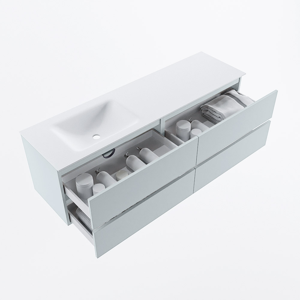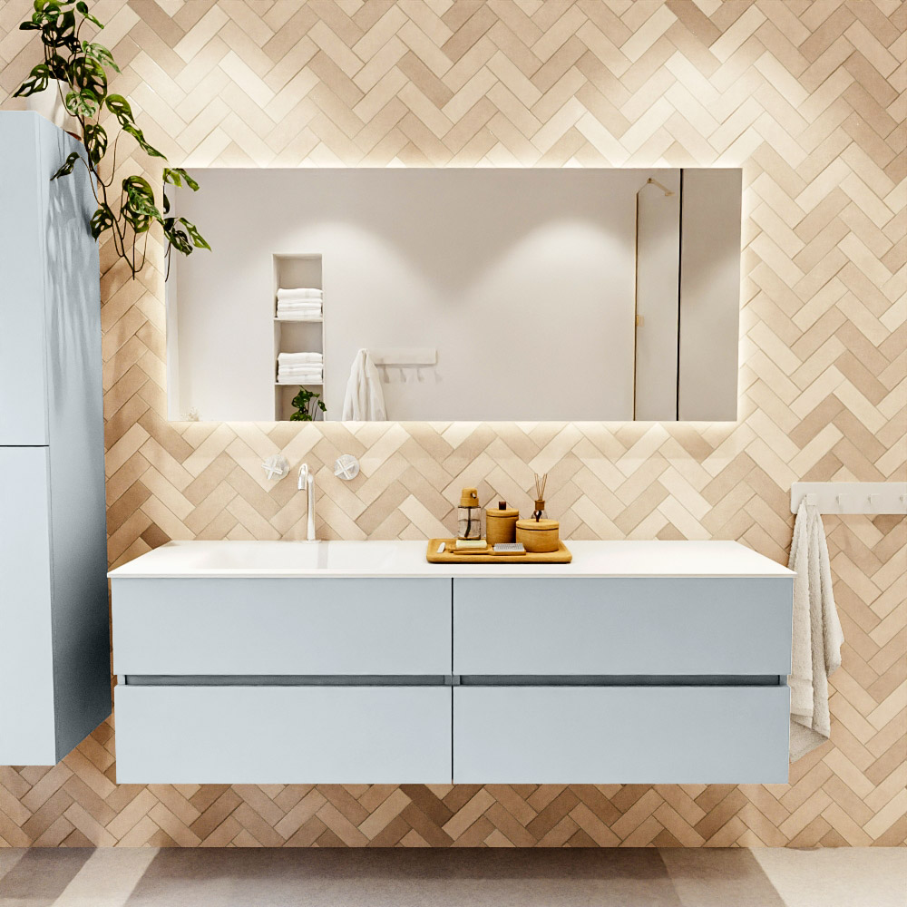 Ya sea que elija un color o un acabado de madera, un mueble de baño a medida, con o sin agujeros para grifos, el conjunto de muebles de baño Vica lo tiene todo. Con la serie Vica, puede elegir entre 3 modelos de lavabos: CLOUD y MOON en Solid Surface, con opciones de lavabo a la derecha, izquierda, en el medio o doble, y con o sin agujeros para grifos. También está el lavabo de cerámica DENIA con opciones en el medio y doble. El conjunto de muebles de baño Vica está disponible en una amplia gama de tamaños estándar, desde 60 cm hasta 200 cm, que aumentan en incrementos de 10 cm. El mueble de baño Vica está disponible en hasta 25 colores, incluyendo nuestros colores especiales Oro y Plata. Si no encuentra el tamaño o color ideal, siempre es posible hacer un pedido a medida. También puede coordinar su baño completo con columnas, bañeras, nichos y accesorios, todos en el mismo color. Con el conjunto de muebles de baño Vica, tendrá un mueble fantástico que completa su baño.