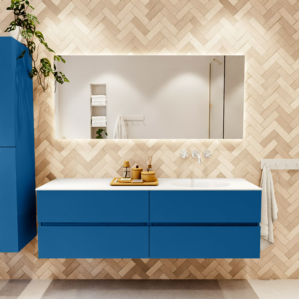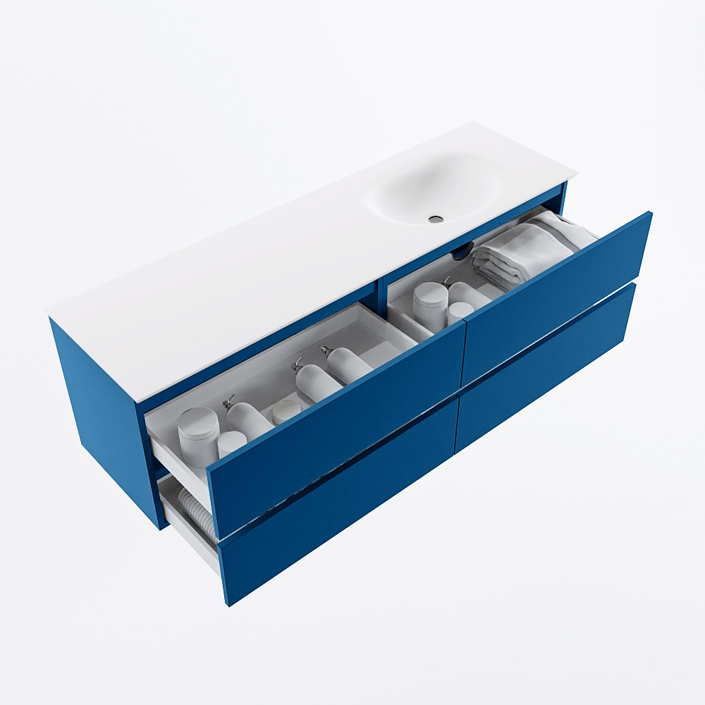 MONDIAZ VICA 160cm mueble de baño Jeans 4 cajones. Lavabo MOON Derecho sin orificio, color Talc.