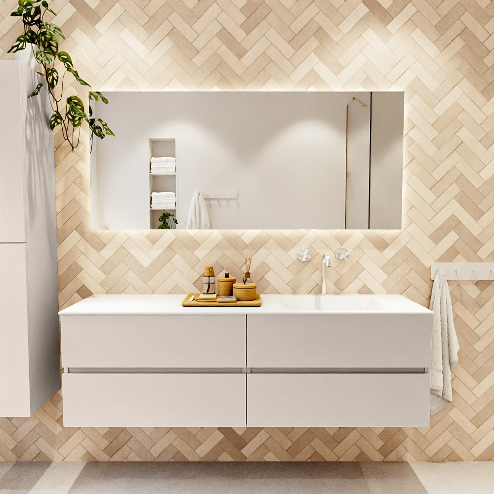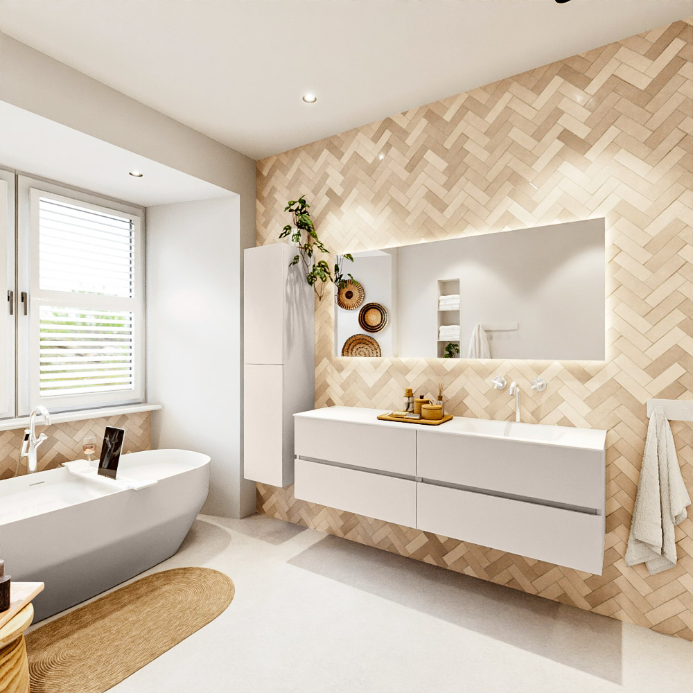 Ya sea que elija un color o un acabado de madera, un mueble de baño a medida, con o sin agujeros para grifos, el conjunto de muebles de baño Vica lo tiene todo. Con la serie Vica, puede elegir entre 3 modelos de lavabos: CLOUD y MOON en Solid Surface, con opciones de lavabo a la derecha, izquierda, en el medio o doble, y con o sin agujeros para grifos. También está el lavabo de cerámica DENIA con opciones en el medio y doble. El conjunto de muebles de baño Vica está disponible en una amplia gama de tamaños estándar, desde 60 cm hasta 200 cm, que aumentan en incrementos de 10 cm. El mueble de baño Vica está disponible en hasta 25 colores, incluyendo nuestros colores especiales Oro y Plata. Si no encuentra el tamaño o color ideal, siempre es posible hacer un pedido a medida. También puede coordinar su baño completo con columnas, bañeras, nichos y accesorios, todos en el mismo color. Con el conjunto de muebles de baño Vica, tendrá un mueble fantástico que completa su baño.