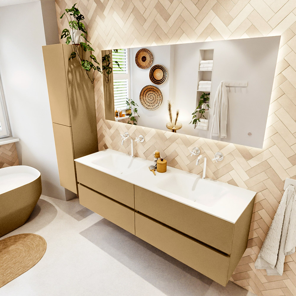 Ya sea que elija un color o un acabado de madera, un mueble de baño a medida, con o sin agujeros para grifos, el conjunto de muebles de baño Vica lo tiene todo. Con la serie Vica, puede elegir entre 3 modelos de lavabos: CLOUD y MOON en Solid Surface, con opciones de lavabo a la derecha, izquierda, en el medio o doble, y con o sin agujeros para grifos. También está el lavabo de cerámica DENIA con opciones en el medio y doble. El conjunto de muebles de baño Vica está disponible en una amplia gama de tamaños estándar, desde 60 cm hasta 200 cm, que aumentan en incrementos de 10 cm. El mueble de baño Vica está disponible en hasta 25 colores, incluyendo nuestros colores especiales Oro y Plata. Si no encuentra el tamaño o color ideal, siempre es posible hacer un pedido a medida. También puede coordinar su baño completo con columnas, bañeras, nichos y accesorios, todos en el mismo color. Con el conjunto de muebles de baño Vica, tendrá un mueble fantástico que completa su baño.