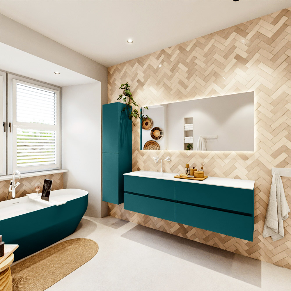 En español: Ya sea que elija un color o un acabado de madera, un mueble de baño a medida, con o sin agujeros para grifos, el conjunto de muebles de baño Vica lo tiene todo. Con la serie Vica, puede elegir entre 3 modelos de lavabos: CLOUD y MOON en Solid Surface, con opciones de lavabo a la derecha, izquierda, en el medio o doble, y con o sin agujeros para grifos. También está el lavabo de cerámica DENIA con opciones en el medio y doble. El conjunto de muebles de baño Vica está disponible en una amplia gama de tamaños estándar, desde 60 cm hasta 200 cm, que aumentan en incrementos de 10 cm. El mueble de baño Vica está disponible en hasta 25 colores, incluyendo nuestros colores especiales Oro y Plata. Si no encuentra el tamaño o color ideal, siempre es posible hacer un pedido a medida. También puede coordinar su baño completo con columnas, bañeras, nichos y accesorios, todos en el mismo color. Con el conjunto de muebles de baño Vica, tendrá un mueble fantástico que completa su baño.