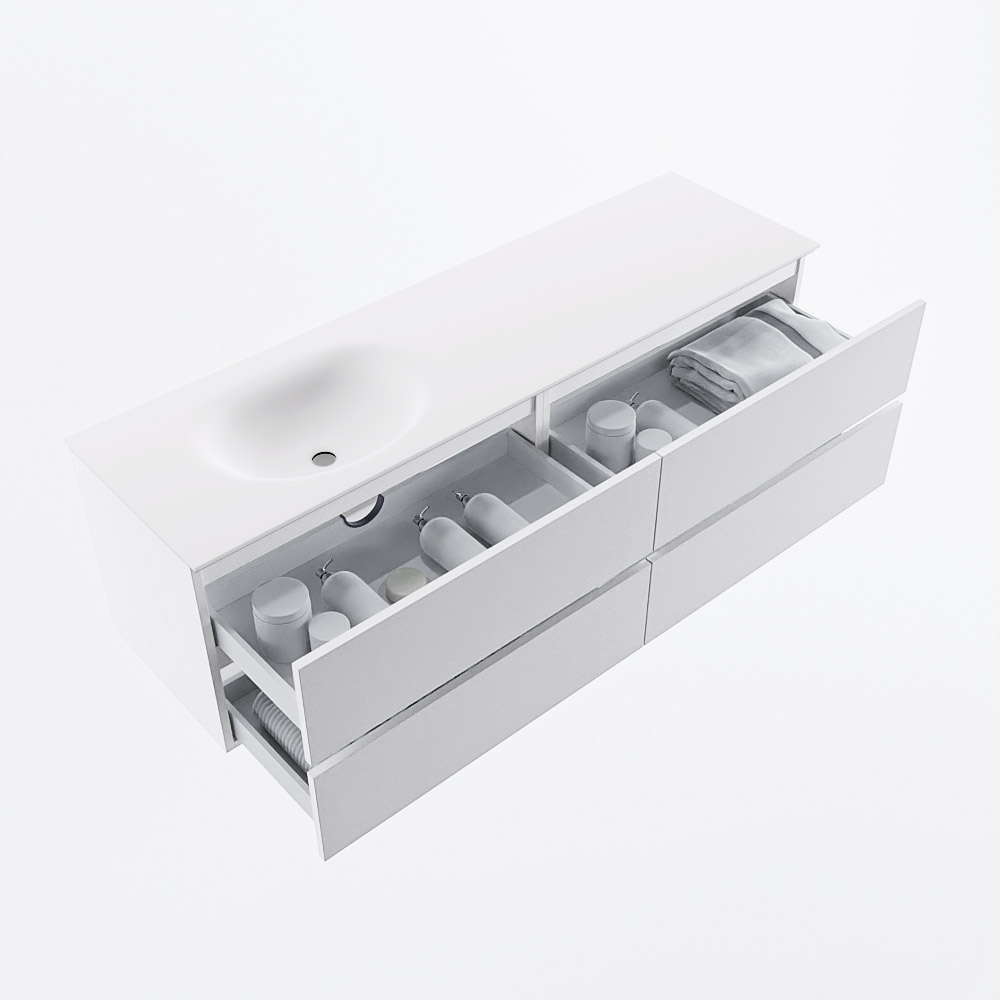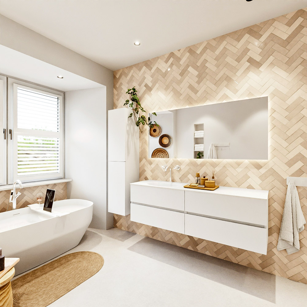 Ya sea que elija un color o un acabado de madera, un mueble de baño a medida, con o sin agujeros para grifos, el conjunto de muebles de baño Vica lo tiene todo. Con la serie Vica, puede elegir entre 3 modelos de lavabos: CLOUD y MOON en Solid Surface, con opciones de lavabo a la derecha, izquierda, en el medio o doble, y con o sin agujeros para grifos. También está el lavabo de cerámica DENIA con opciones en el medio y doble. El conjunto de muebles de baño Vica está disponible en una amplia gama de tamaños estándar, desde 60 cm hasta 200 cm, que aumentan en incrementos de 10 cm. El mueble de baño Vica está disponible en hasta 25 colores, incluyendo nuestros colores especiales Oro y Plata. Si no encuentra el tamaño o color ideal, siempre es posible hacer un pedido a medida. También puede coordinar su baño completo con columnas, bañeras, nichos y accesorios, todos en el mismo color. Con el conjunto de muebles de baño Vica, tendrá un mueble fantástico que completa su baño.