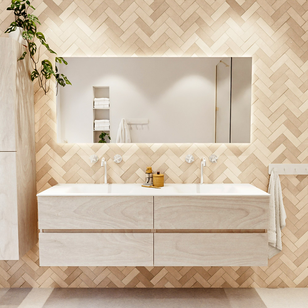Ya sea que elija un color o un acabado de madera, un mueble de baño a medida, con o sin agujeros para grifos, el conjunto de muebles de baño Vica lo tiene todo. Con la serie Vica, puede elegir entre 3 modelos de lavabos: CLOUD y MOON en Solid Surface, con opciones de lavabo a la derecha, izquierda, en el medio o doble, y con o sin agujeros para grifos. También está el lavabo de cerámica DENIA con opciones en el medio y doble. El conjunto de muebles de baño Vica está disponible en una amplia gama de tamaños estándar, desde 60 cm hasta 200 cm, que aumentan en incrementos de 10 cm. El mueble de baño Vica está disponible en hasta 25 colores, incluyendo nuestros colores especiales Oro y Plata. Si no encuentra el tamaño o color ideal, siempre es posible hacer un pedido a medida. También puede coordinar su baño completo con columnas, bañeras, nichos y accesorios, todos en el mismo color. Con el conjunto de muebles de baño Vica, tendrá un mueble fantástico que completa su baño.