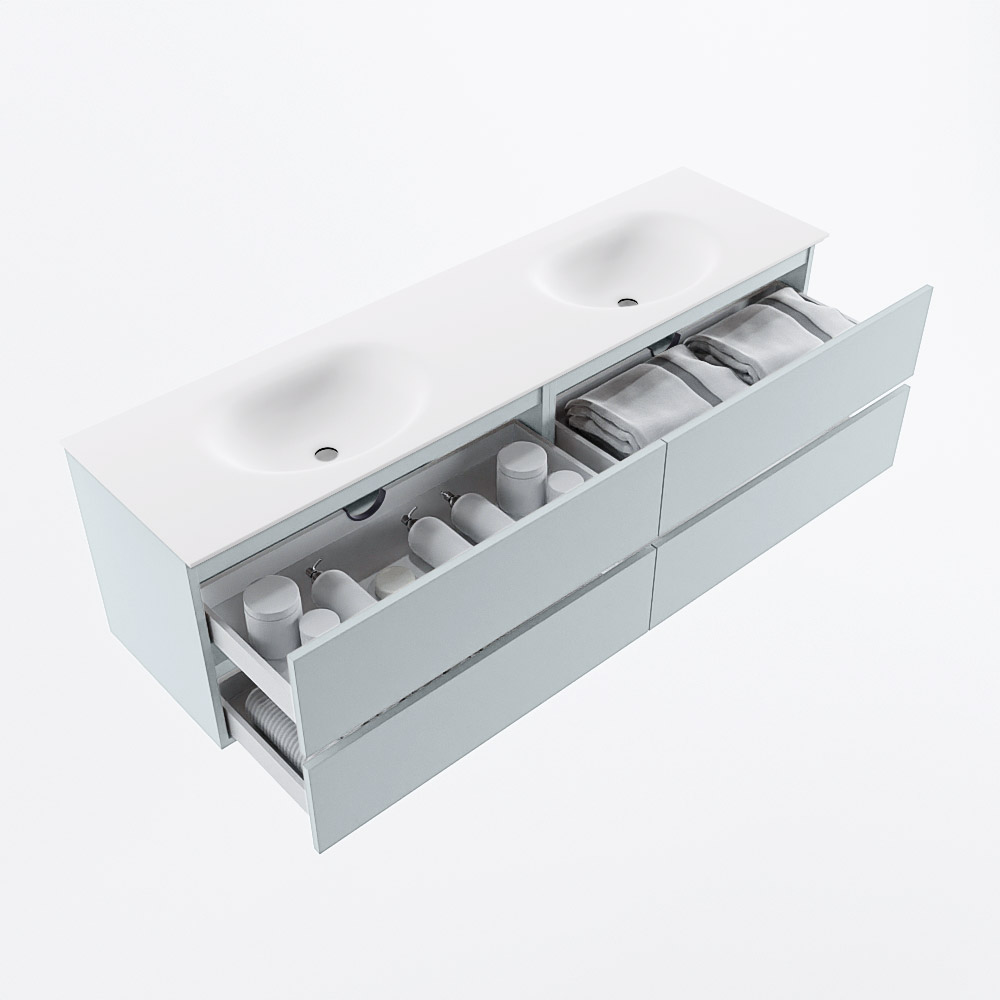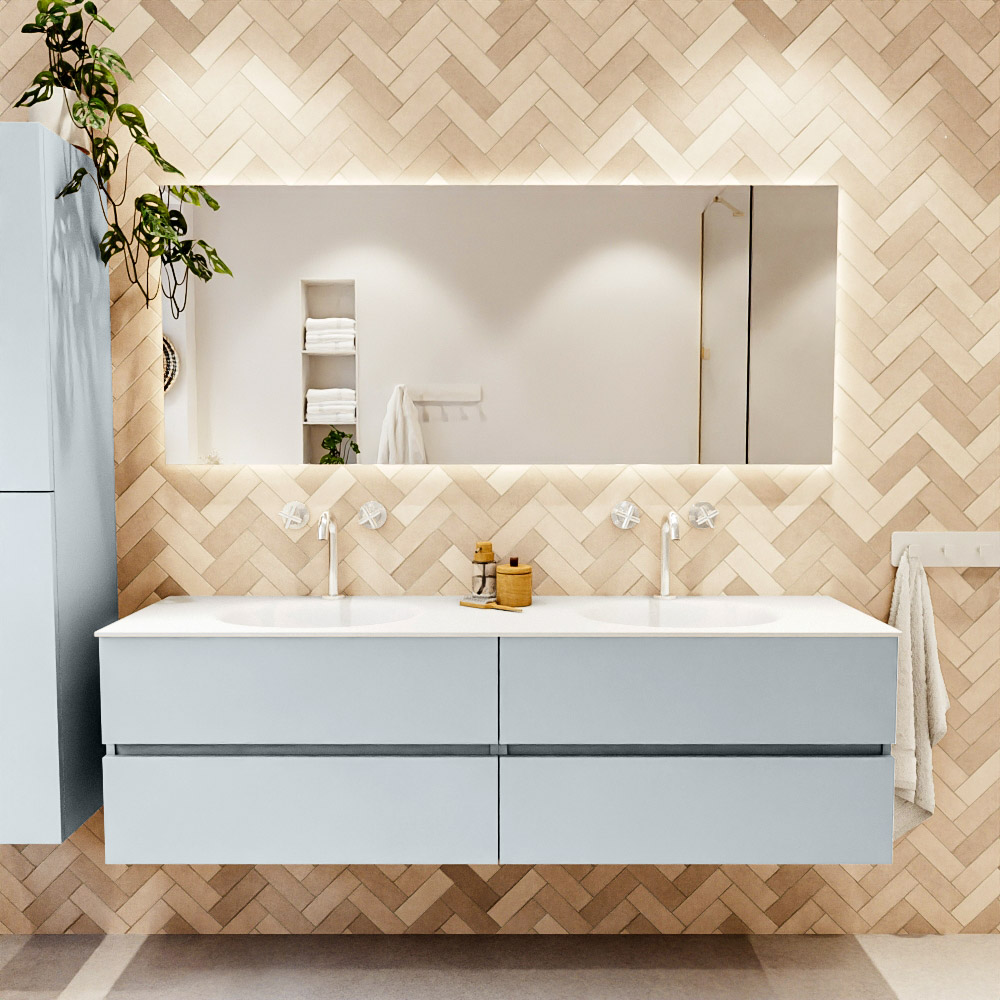 Ya sea que elija un color o un acabado de madera, un mueble de baño a medida, con o sin agujeros para grifos, el conjunto de muebles de baño Vica lo tiene todo. Con la serie Vica, puede elegir entre 3 modelos de lavabos: CLOUD y MOON en Solid Surface, con opciones de lavabo a la derecha, izquierda, en el medio o doble, y con o sin agujeros para grifos. También está el lavabo de cerámica DENIA con opciones en el medio y doble. El conjunto de muebles de baño Vica está disponible en una amplia gama de tamaños estándar, desde 60 cm hasta 200 cm, que aumentan en incrementos de 10 cm. El mueble de baño Vica está disponible en hasta 25 colores, incluyendo nuestros colores especiales Oro y Plata. Si no encuentra el tamaño o color ideal, siempre es posible hacer un pedido a medida. También puede coordinar su baño completo con columnas, bañeras, nichos y accesorios, todos en el mismo color. Con el conjunto de muebles de baño Vica, tendrá un mueble fantástico que completa su baño.