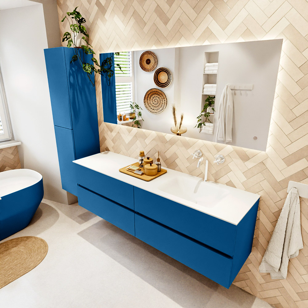 Ya sea que elija un color o un acabado de madera, un mueble de baño a medida, con o sin agujeros para grifos, el conjunto de muebles de baño Vica lo tiene todo. Con la serie Vica, puede elegir entre 3 modelos de lavabos: CLOUD y MOON en Solid Surface, con opciones de lavabo a la derecha, izquierda, en el medio o doble, y con o sin agujeros para grifos. También está el lavabo de cerámica DENIA con opciones en el medio y doble. El conjunto de muebles de baño Vica está disponible en una amplia gama de tamaños estándar, desde 60 cm hasta 200 cm, que aumentan en incrementos de 10 cm. El mueble de baño Vica está disponible en hasta 25 colores, incluyendo nuestros colores especiales Oro y Plata. Si no encuentra el tamaño o color ideal, siempre es posible hacer un pedido a medida. También puede coordinar su baño completo con columnas, bañeras, nichos y accesorios, todos en el mismo color. Con el conjunto de muebles de baño Vica, tendrá un mueble fantástico que completa su baño.