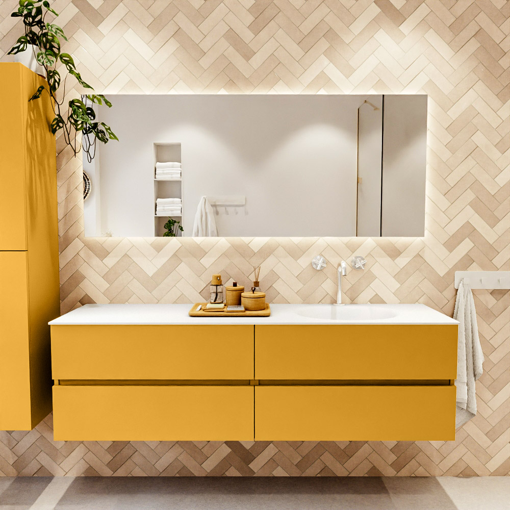 En español: Ya sea que elija un color o un acabado de madera, un mueble de baño a medida, con o sin agujeros para grifos, el conjunto de muebles de baño Vica lo tiene todo. Con la serie Vica, puede elegir entre 3 modelos de lavabos: CLOUD y MOON en Solid Surface, con opciones de lavabo a la derecha, izquierda, en el medio o doble, y con o sin agujeros para grifos. También está el lavabo de cerámica DENIA con opciones en el medio y doble. El conjunto de muebles de baño Vica está disponible en una amplia gama de tamaños estándar, desde 60 cm hasta 200 cm, que aumentan en incrementos de 10 cm. El mueble de baño Vica está disponible en hasta 25 colores, incluyendo nuestros colores especiales Oro y Plata. Si no encuentra el tamaño o color ideal, siempre es posible hacer un pedido a medida. También puede coordinar su baño completo con columnas, bañeras, nichos y accesorios, todos en el mismo color. Con el conjunto de muebles de baño Vica, tendrá un mueble fantástico que completa su baño.