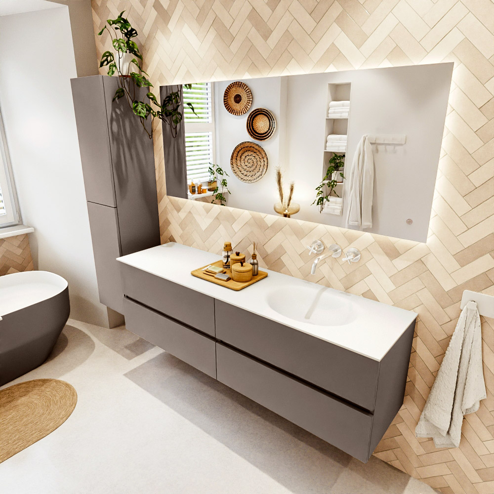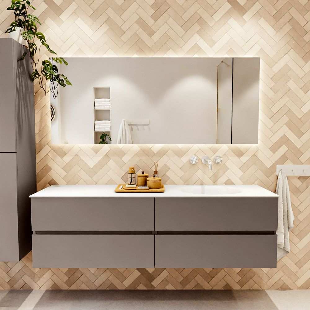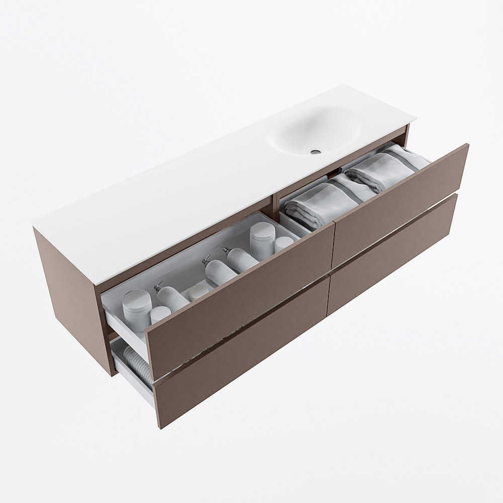 MONDIAZ VICA 170cm mueble de baño Smoke 4 cajones. Lavabo MOON Derecho sin orificio, color Talc.