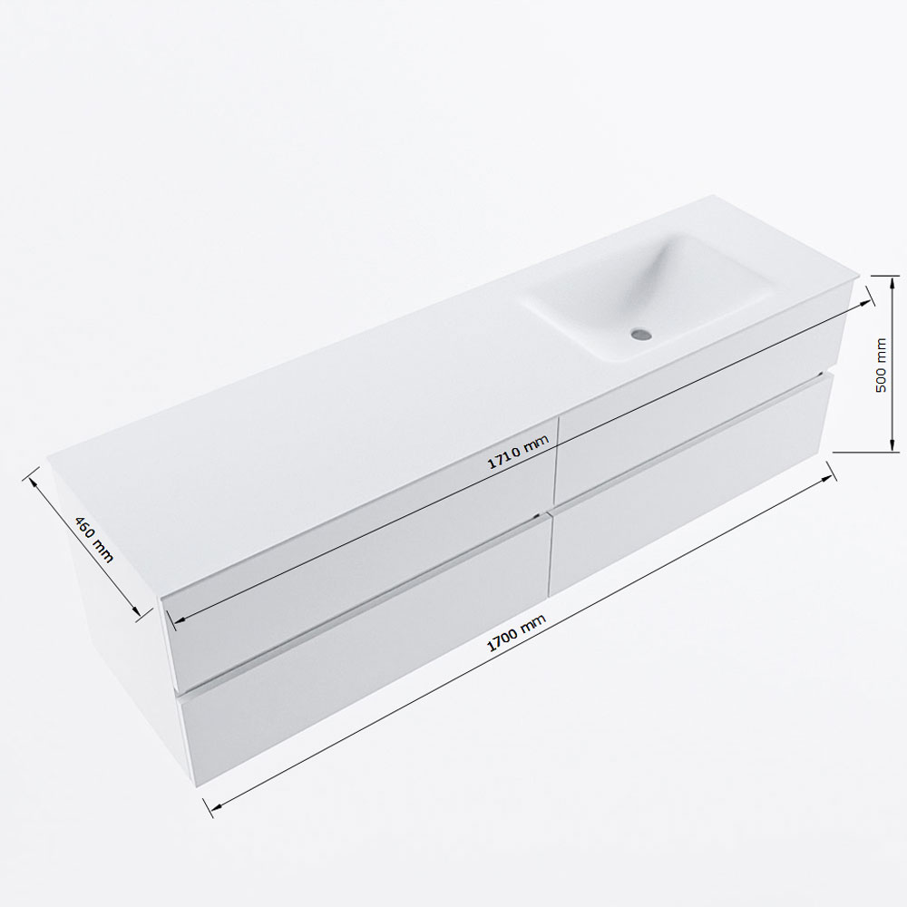 MONDIAZ VICA 170cm mueble de baño Underlayment 4 cajones. Lavabo CLOUD Derecho 1 orificio, color Talc.
