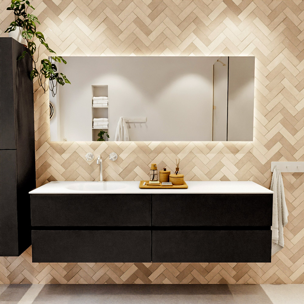 Ya sea que elija un color o un acabado de madera, un mueble de baño a medida, con o sin agujeros para grifos, el conjunto de muebles de baño Vica lo tiene todo. Con la serie Vica, puede elegir entre 3 modelos de lavabos: CLOUD y MOON en Solid Surface, con opciones de lavabo a la derecha, izquierda, en el medio o doble, y con o sin agujeros para grifos. También está el lavabo de cerámica DENIA con opciones en el medio y doble. El conjunto de muebles de baño Vica está disponible en una amplia gama de tamaños estándar, desde 60 cm hasta 200 cm, que aumentan en incrementos de 10 cm. El mueble de baño Vica está disponible en hasta 25 colores, incluyendo nuestros colores especiales Oro y Plata. Si no encuentra el tamaño o color ideal, siempre es posible hacer un pedido a medida. También puede coordinar su baño completo con columnas, bañeras, nichos y accesorios, todos en el mismo color. Con el conjunto de muebles de baño Vica, tendrá un mueble fantástico que completa su baño.