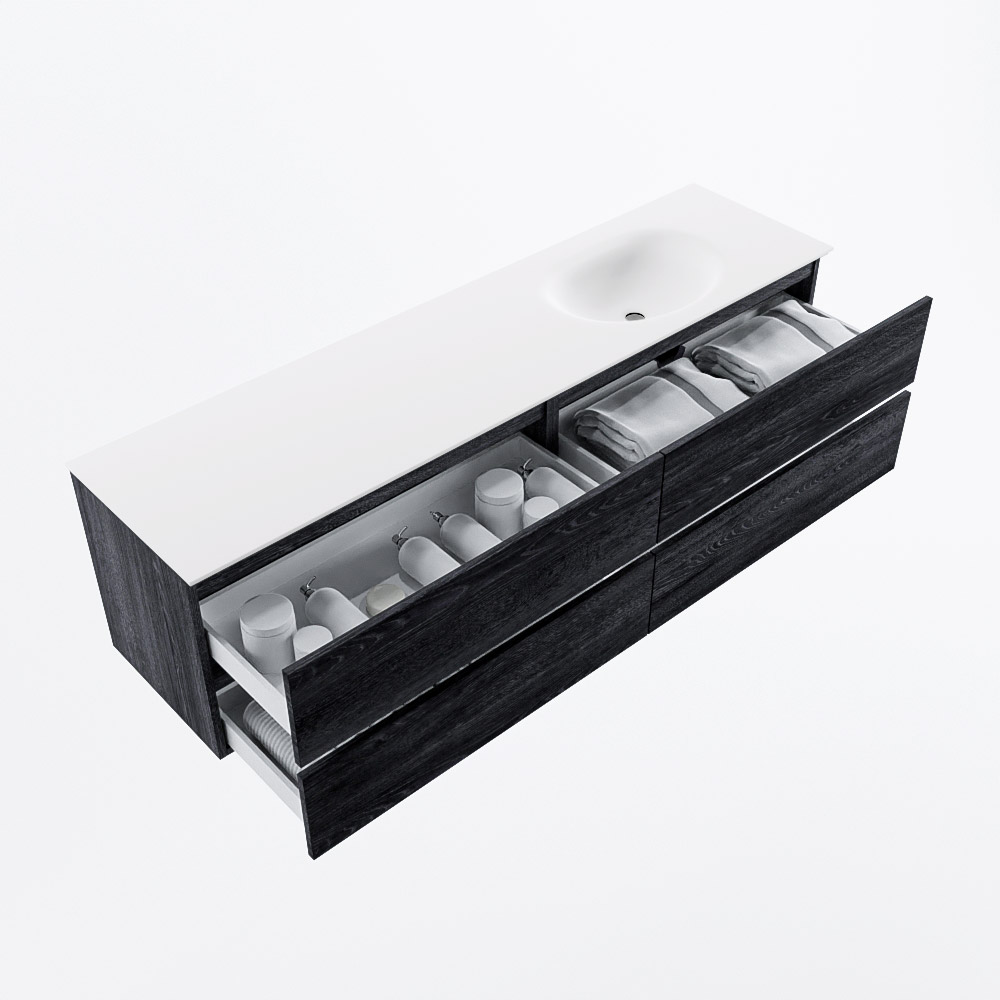 Ya sea que elija un color o un acabado de madera, un mueble de baño a medida, con o sin agujeros para grifos, el conjunto de muebles de baño Vica lo tiene todo. Con la serie Vica, puede elegir entre 3 modelos de lavabos: CLOUD y MOON en Solid Surface, con opciones de lavabo a la derecha, izquierda, en el medio o doble, y con o sin agujeros para grifos. También está el lavabo de cerámica DENIA con opciones en el medio y doble. El conjunto de muebles de baño Vica está disponible en una amplia gama de tamaños estándar, desde 60 cm hasta 200 cm, que aumentan en incrementos de 10 cm. El mueble de baño Vica está disponible en hasta 25 colores, incluyendo nuestros colores especiales Oro y Plata. Si no encuentra el tamaño o color ideal, siempre es posible hacer un pedido a medida. También puede coordinar su baño completo con columnas, bañeras, nichos y accesorios, todos en el mismo color. Con el conjunto de muebles de baño Vica, tendrá un mueble fantástico que completa su baño.