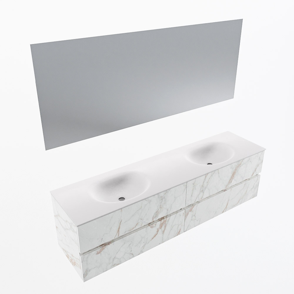 En español: Ya sea que elija un color o un acabado de madera, un mueble de baño a medida, con o sin agujeros para grifos, el conjunto de muebles de baño Vica lo tiene todo. Con la serie Vica, puede elegir entre 3 modelos de lavabos: CLOUD y MOON en Solid Surface, con opciones de lavabo a la derecha, izquierda, en el medio o doble, y con o sin agujeros para grifos. También está el lavabo de cerámica DENIA con opciones en el medio y doble. El conjunto de muebles de baño Vica está disponible en una amplia gama de tamaños estándar, desde 60 cm hasta 200 cm, que aumentan en incrementos de 10 cm. El mueble de baño Vica está disponible en hasta 25 colores, incluyendo nuestros colores especiales Oro y Plata. Si no encuentra el tamaño o color ideal, siempre es posible hacer un pedido a medida. También puede coordinar su baño completo con columnas, bañeras, nichos y accesorios, todos en el mismo color. Con el conjunto de muebles de baño Vica, tendrá un mueble fantástico que completa su baño.