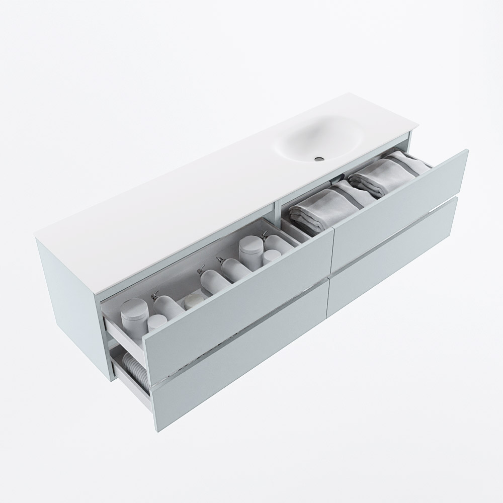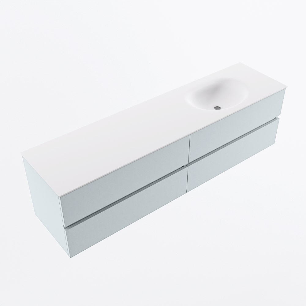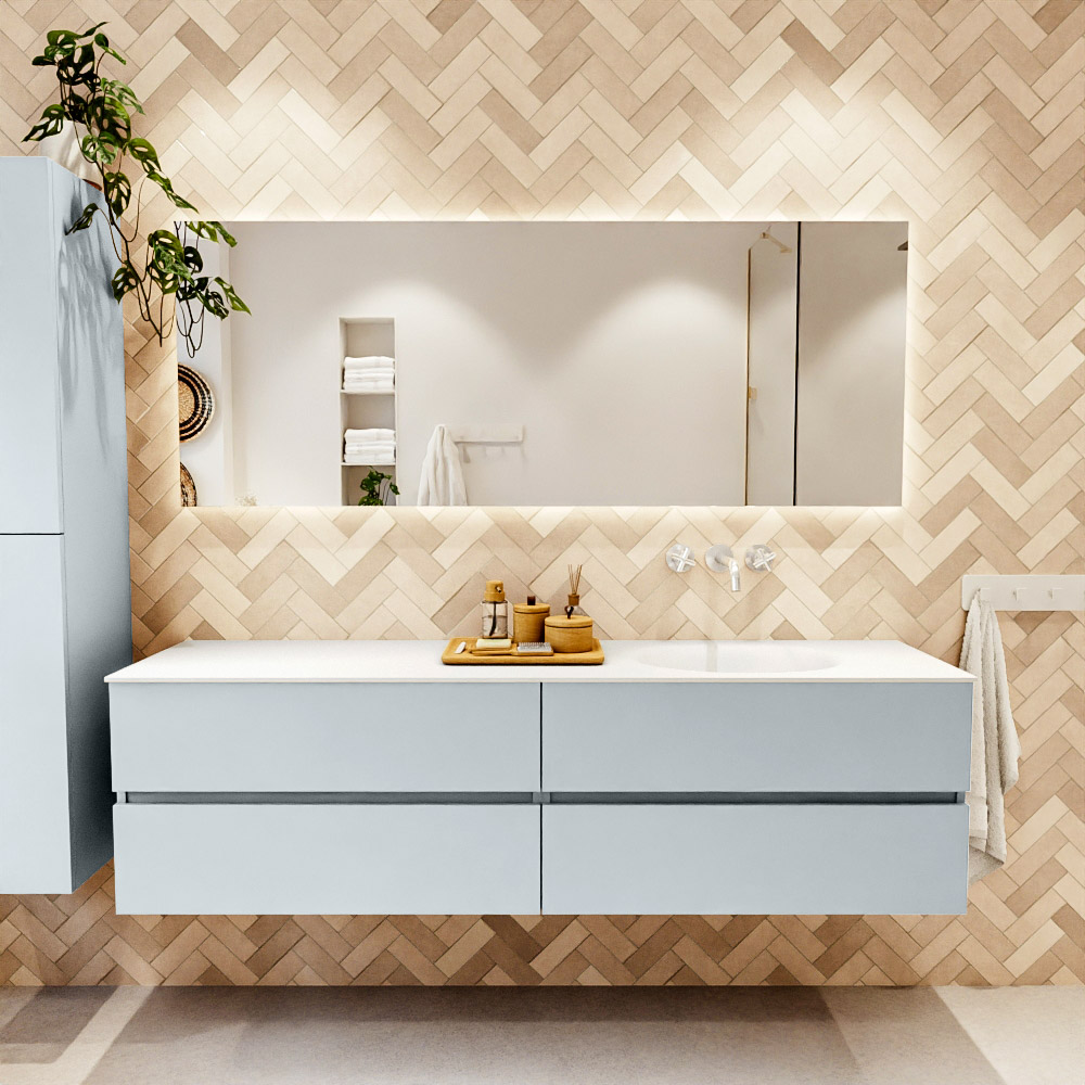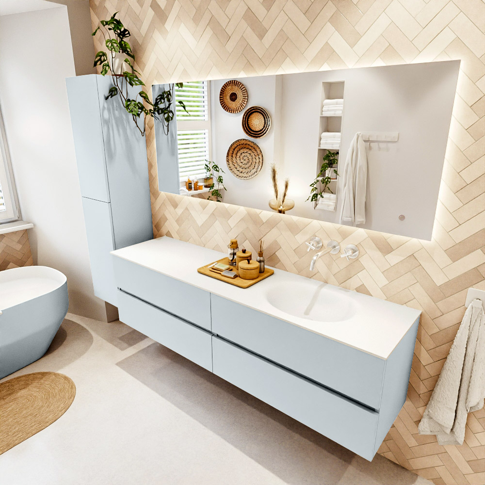 Ya sea que elija un color o un acabado de madera, un mueble de baño a medida, con o sin agujeros para grifos, el conjunto de muebles de baño Vica lo tiene todo. Con la serie Vica, puede elegir entre 3 modelos de lavabos: CLOUD y MOON en Solid Surface, con opciones de lavabo a la derecha, izquierda, en el medio o doble, y con o sin agujeros para grifos. También está el lavabo de cerámica DENIA con opciones en el medio y doble. El conjunto de muebles de baño Vica está disponible en una amplia gama de tamaños estándar, desde 60 cm hasta 200 cm, que aumentan en incrementos de 10 cm. El mueble de baño Vica está disponible en hasta 25 colores, incluyendo nuestros colores especiales Oro y Plata. Si no encuentra el tamaño o color ideal, siempre es posible hacer un pedido a medida. También puede coordinar su baño completo con columnas, bañeras, nichos y accesorios, todos en el mismo color. Con el conjunto de muebles de baño Vica, tendrá un mueble fantástico que completa su baño.