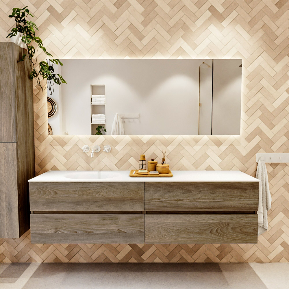 Ya sea que elija un color o un acabado de madera, un mueble de baño a medida, con o sin agujeros para grifos, el conjunto de muebles de baño Vica lo tiene todo. Con la serie Vica, puede elegir entre 3 modelos de lavabos: CLOUD y MOON en Solid Surface, con opciones de lavabo a la derecha, izquierda, en el medio o doble, y con o sin agujeros para grifos. También está el lavabo de cerámica DENIA con opciones en el medio y doble. El conjunto de muebles de baño Vica está disponible en una amplia gama de tamaños estándar, desde 60 cm hasta 200 cm, que aumentan en incrementos de 10 cm. El mueble de baño Vica está disponible en hasta 25 colores, incluyendo nuestros colores especiales Oro y Plata. Si no encuentra el tamaño o color ideal, siempre es posible hacer un pedido a medida. También puede coordinar su baño completo con columnas, bañeras, nichos y accesorios, todos en el mismo color. Con el conjunto de muebles de baño Vica, tendrá un mueble fantástico que completa su baño.