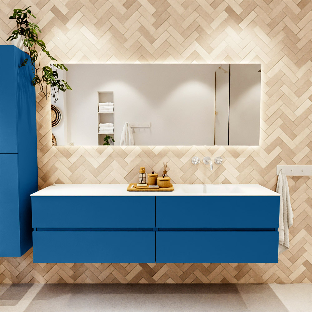En español: Ya sea que elija un color o un acabado de madera, un mueble de baño a medida, con o sin agujeros para grifos, el conjunto de muebles de baño Vica lo tiene todo. Con la serie Vica, puede elegir entre 3 modelos de lavabos: CLOUD y MOON en Solid Surface, con opciones de lavabo a la derecha, izquierda, en el medio o doble, y con o sin agujeros para grifos. También está el lavabo de cerámica DENIA con opciones en el medio y doble. El conjunto de muebles de baño Vica está disponible en una amplia gama de tamaños estándar, desde 60 cm hasta 200 cm, que aumentan en incrementos de 10 cm. El mueble de baño Vica está disponible en hasta 25 colores, incluyendo nuestros colores especiales Oro y Plata. Si no encuentra el tamaño o color ideal, siempre es posible hacer un pedido a medida. También puede coordinar su baño completo con columnas, bañeras, nichos y accesorios, todos en el mismo color. Con el conjunto de muebles de baño Vica, tendrá un mueble fantástico que completa su baño.
