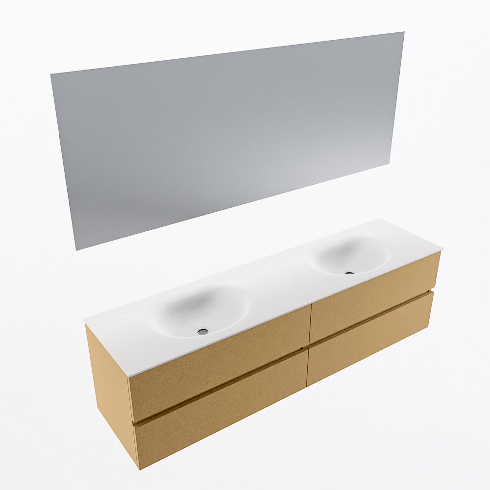 En español: Ya sea que elija un color o un acabado de madera, un mueble de baño a medida, con o sin agujeros para grifos, el conjunto de muebles de baño Vica lo tiene todo. Con la serie Vica, puede elegir entre 3 modelos de lavabos: CLOUD y MOON en Solid Surface, con opciones de lavabo a la derecha, izquierda, en el medio o doble, y con o sin agujeros para grifos. También está el lavabo de cerámica DENIA con opciones en el medio y doble. El conjunto de muebles de baño Vica está disponible en una amplia gama de tamaños estándar, desde 60 cm hasta 200 cm, que aumentan en incrementos de 10 cm. El mueble de baño Vica está disponible en hasta 25 colores, incluyendo nuestros colores especiales Oro y Plata. Si no encuentra el tamaño o color ideal, siempre es posible hacer un pedido a medida. También puede coordinar su baño completo con columnas, bañeras, nichos y accesorios, todos en el mismo color. Con el conjunto de muebles de baño Vica, tendrá un mueble fantástico que completa su baño.