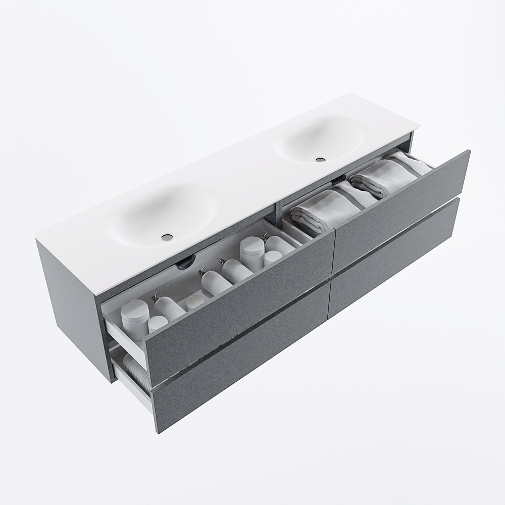 Ya sea que elija un color o un acabado de madera, un mueble de baño a medida, con o sin agujeros para grifos, el conjunto de muebles de baño Vica lo tiene todo. Con la serie Vica, puede elegir entre 3 modelos de lavabos: CLOUD y MOON en Solid Surface, con opciones de lavabo a la derecha, izquierda, en el medio o doble, y con o sin agujeros para grifos. También está el lavabo de cerámica DENIA con opciones en el medio y doble. El conjunto de muebles de baño Vica está disponible en una amplia gama de tamaños estándar, desde 60 cm hasta 200 cm, que aumentan en incrementos de 10 cm. El mueble de baño Vica está disponible en hasta 25 colores, incluyendo nuestros colores especiales Oro y Plata. Si no encuentra el tamaño o color ideal, siempre es posible hacer un pedido a medida. También puede coordinar su baño completo con columnas, bañeras, nichos y accesorios, todos en el mismo color. Con el conjunto de muebles de baño Vica, tendrá un mueble fantástico que completa su baño.